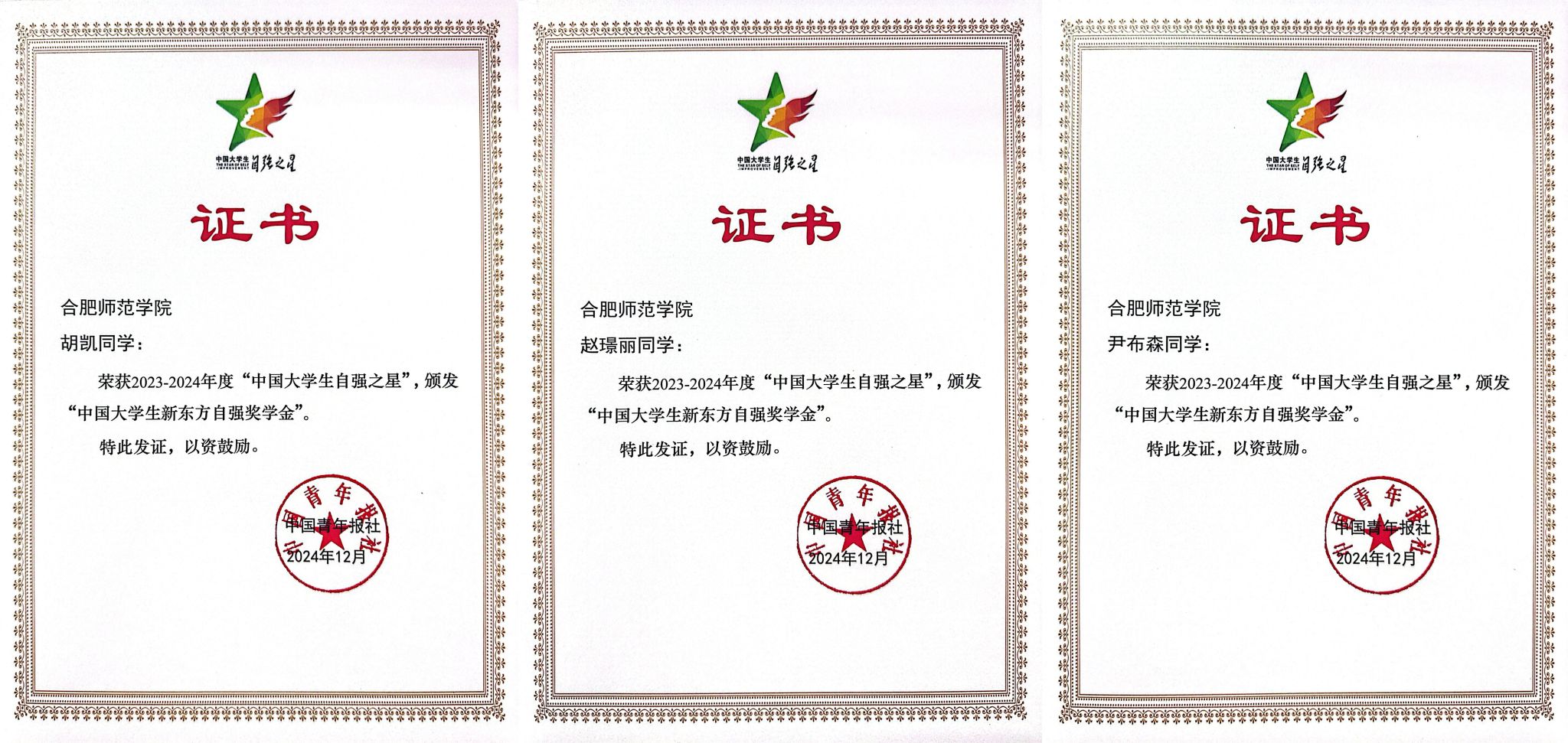 学院3名学子获评2023-2024年度“中国大学生自强之星”荣誉称号