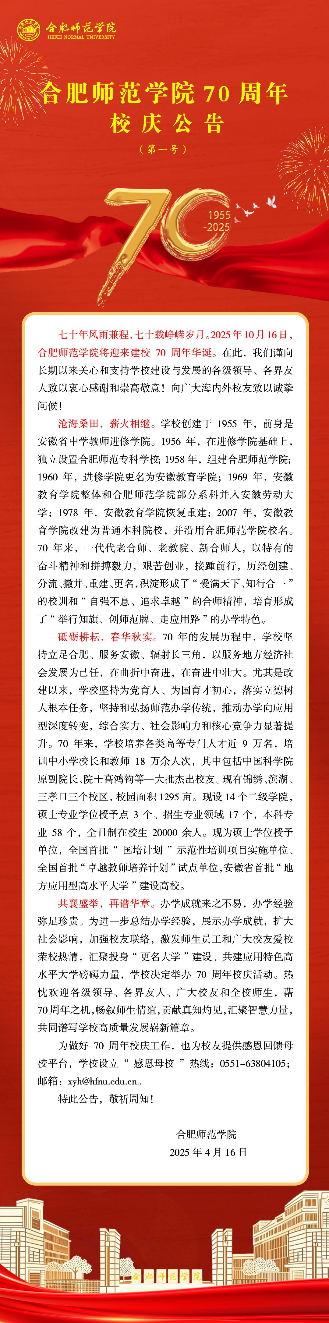 太阳成集团tyc122cc入口70周年校庆公告(第一号)