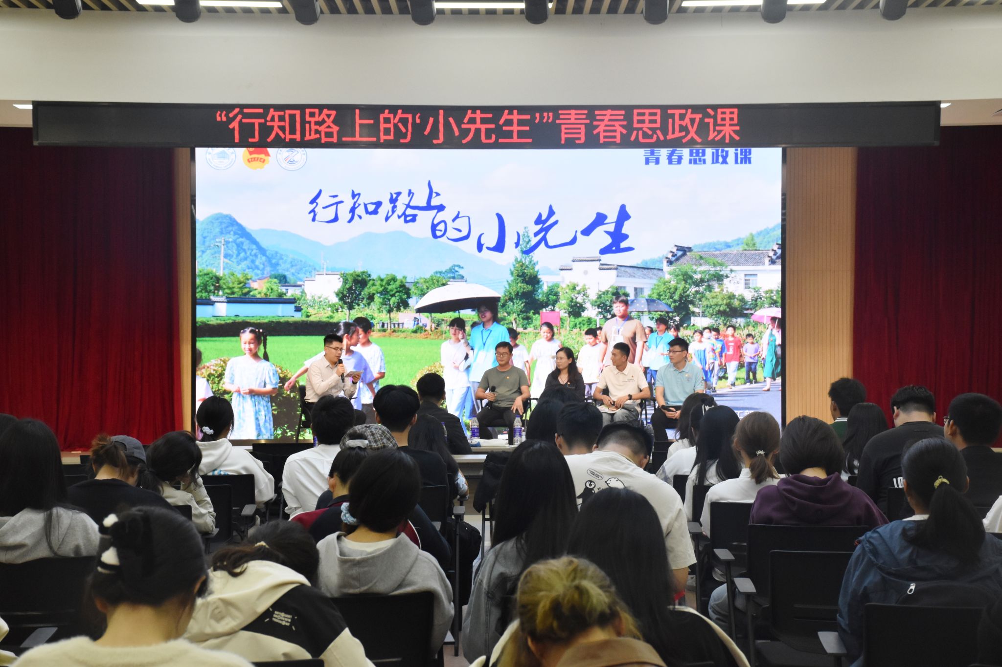 为深入学习贯彻党的二十大和二十届三中全会精神,贯彻落实习近平总书记对学校思政课建设作出的重要指示精神,纪念陶行知诞辰133周年,10月16日下午,学院在锦绣校区大学生活动中心举办“行知路上的‘小先生’”青春思政课活动。院团委、学生工作部负责人,马克思主义学院有关教师,“行知学堂”实践活动“十佳小先生”代表王亚州、朱金凤、曹旺旺、顾万里受邀参加活动,第十四期青年马克思主义者培养工程班、第四期青春学习营锦绣校区全体学员,锦绣校区2024级班级团支部书记、班长、思政委员等200余人到场观摩。