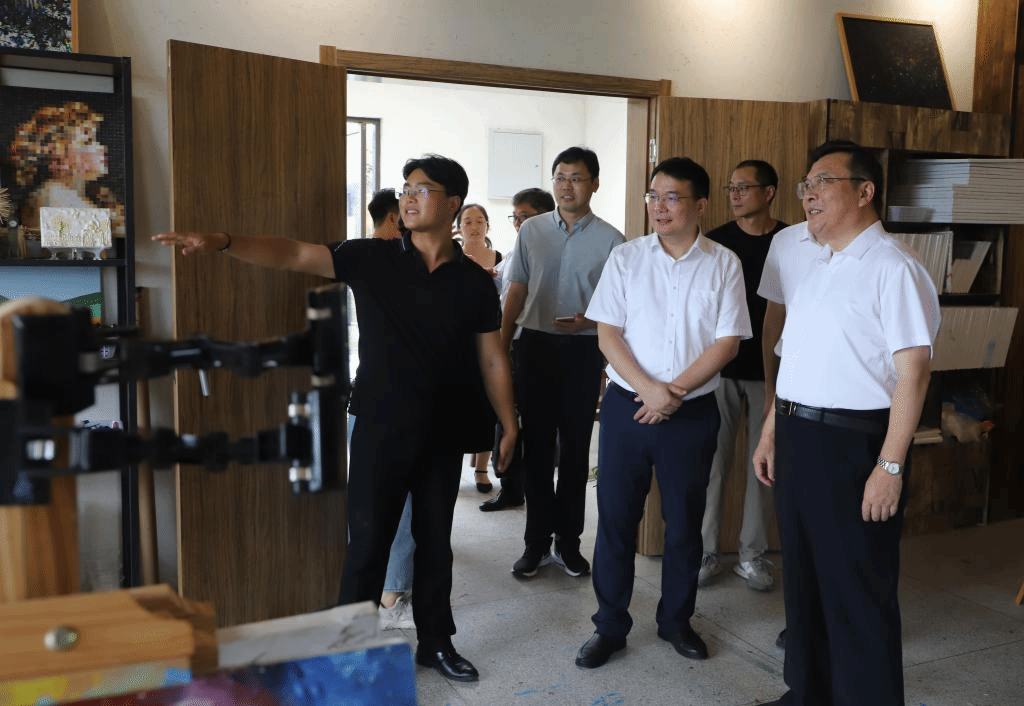 本网讯 8月25日,团省委书记陈明生、院党委书记徐成钢一行赴长丰县调研我院青年师生参与乡村振兴工作。团省委副书记张健,院党委委员、副院长华银峰,长丰县委书记李命山,长丰县人大常委会副主任戚锐,合肥团市委副书记洪欣及院团委、美术与设计学院等单位负责人参与调研。