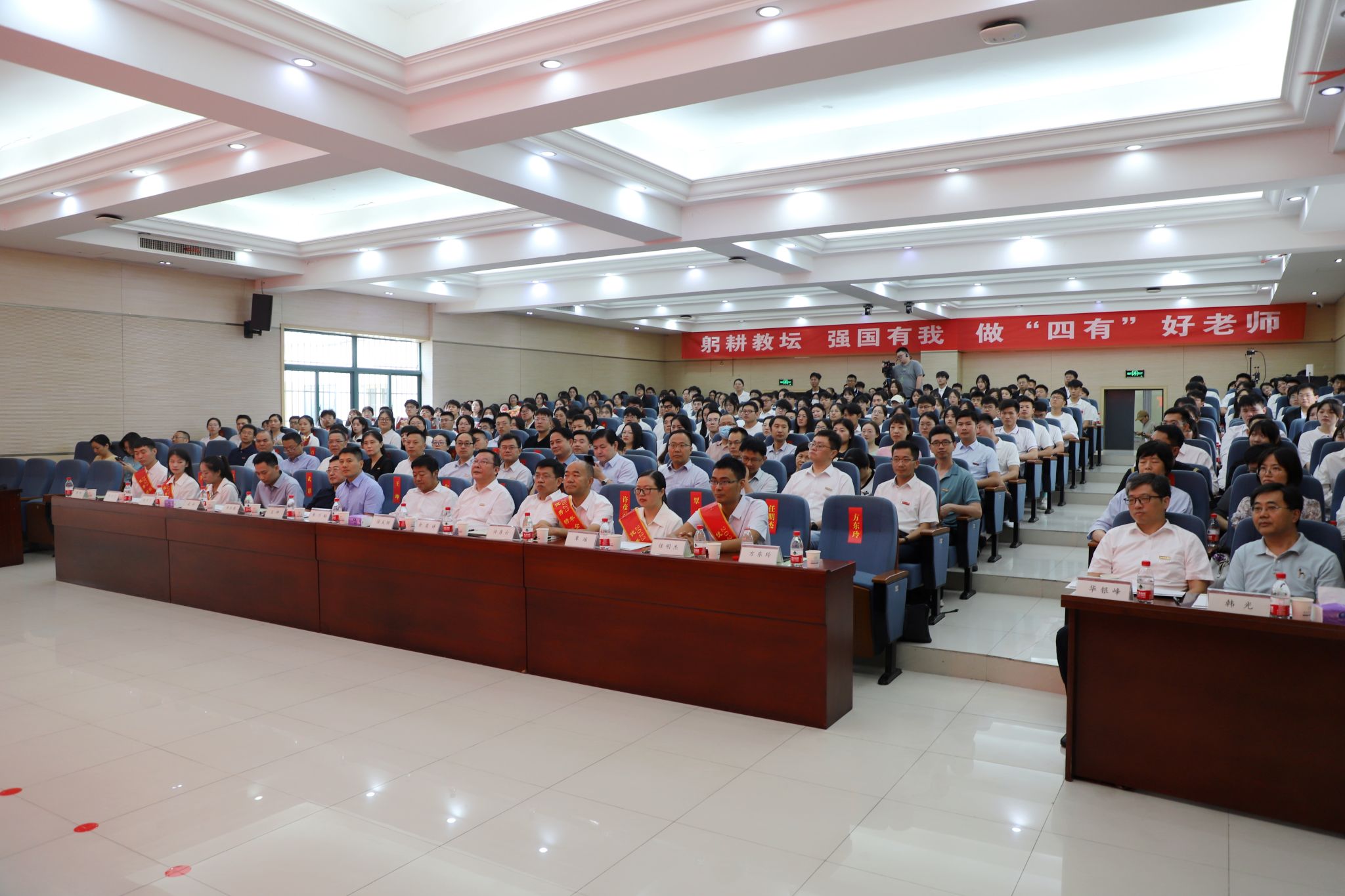 党委书记徐成钢致欢迎辞,他指出,学校以承办此次巡回报告会为契机,实施“人才强校”战略,从严从实加强师德师风建设,教育引导全校教师坚守三尺讲台,潜心教书育人。帮助青年学生树立“躬耕教坛、强国有我”的志向,引导更多毕业生到基层、到农村、到祖国最需要的地方去,为乡村振兴和教育强国贡献力量。