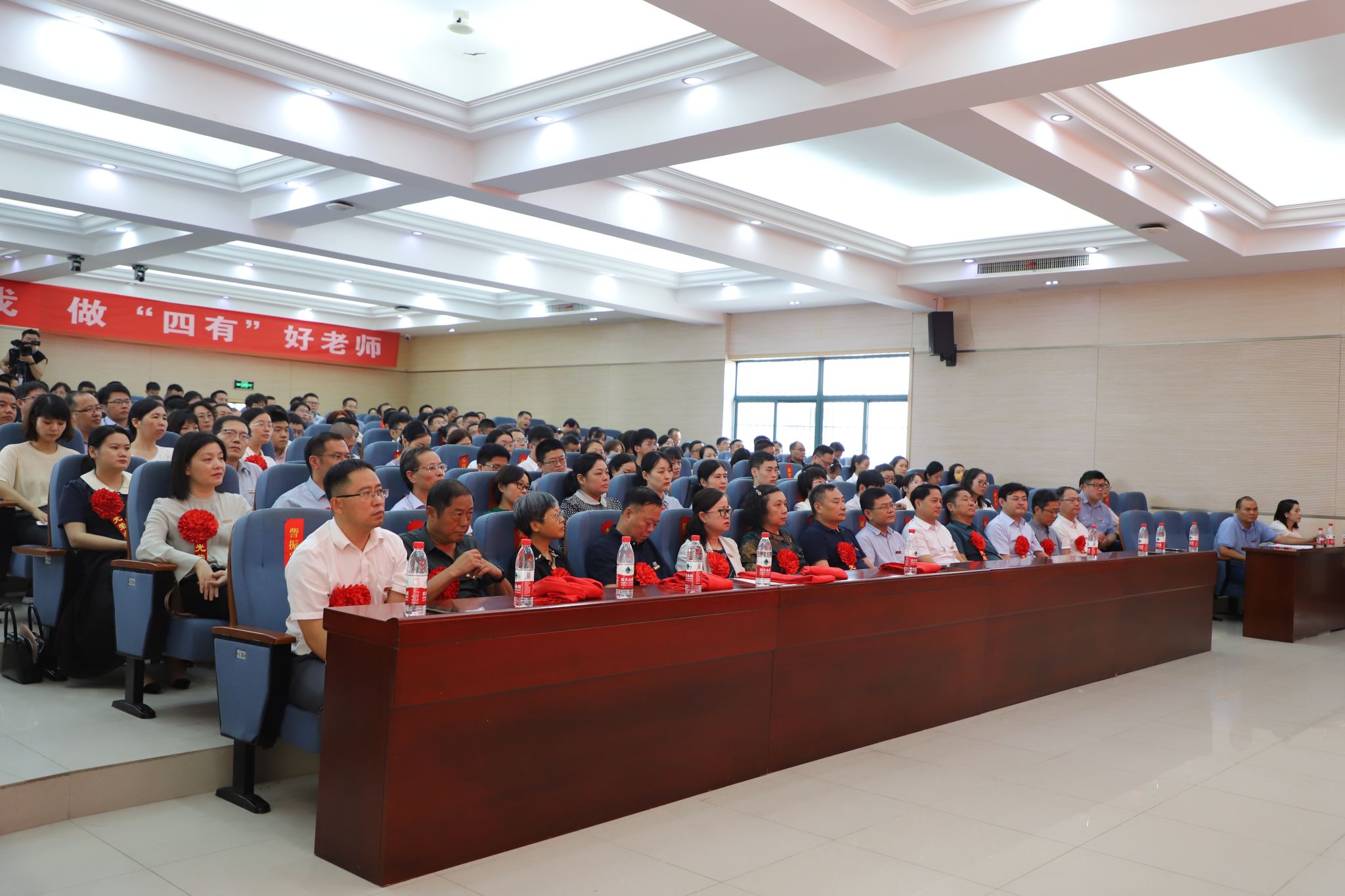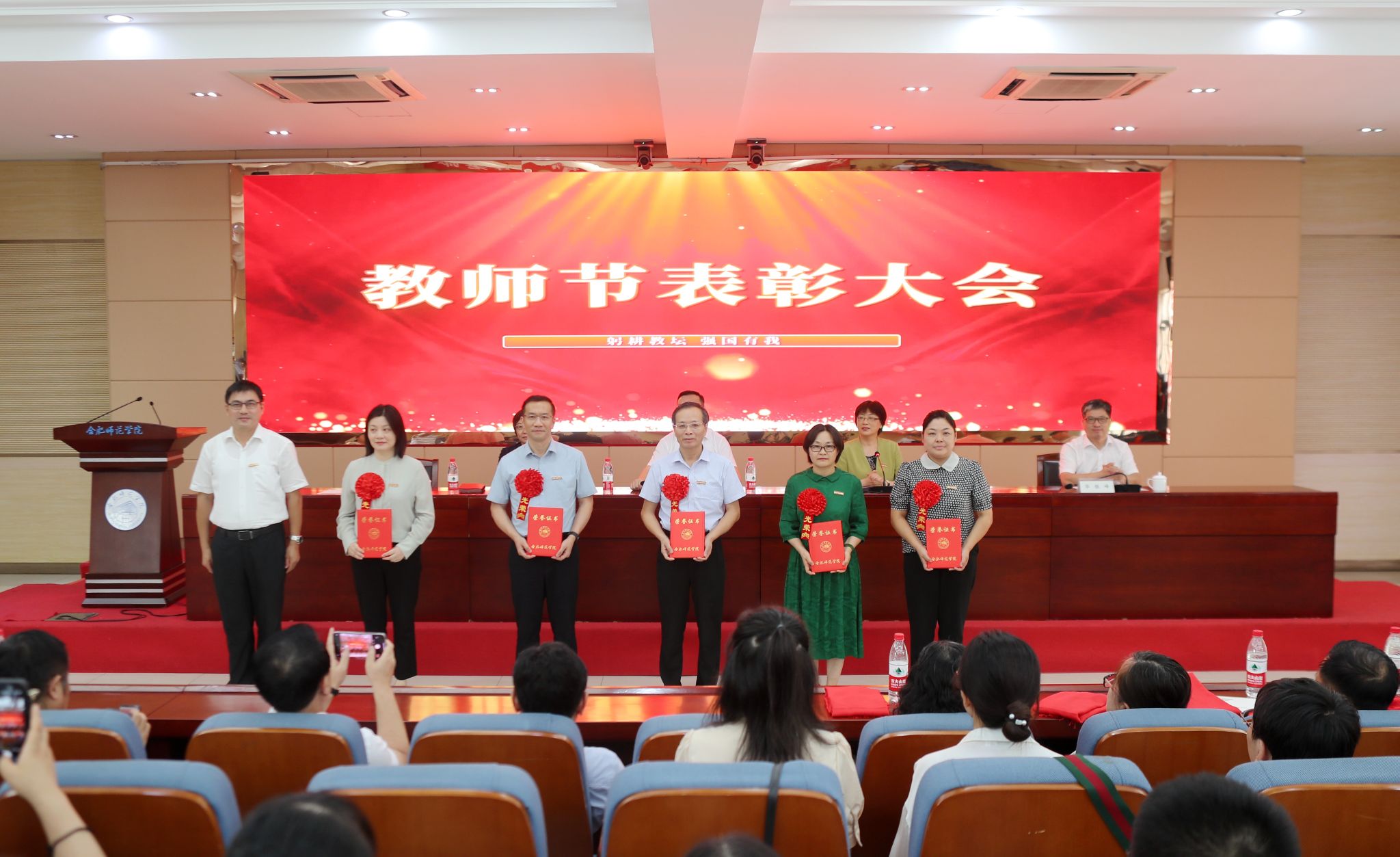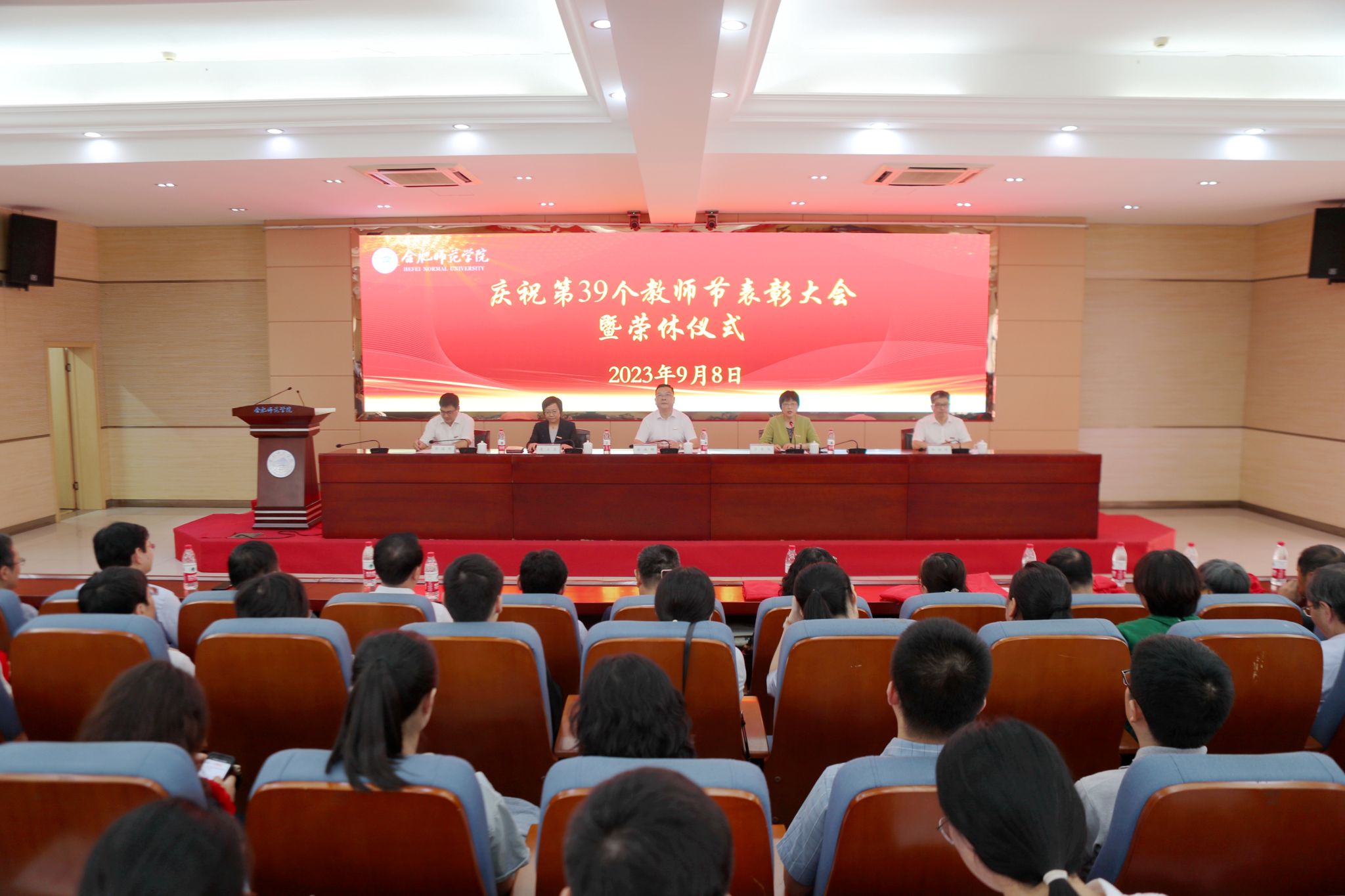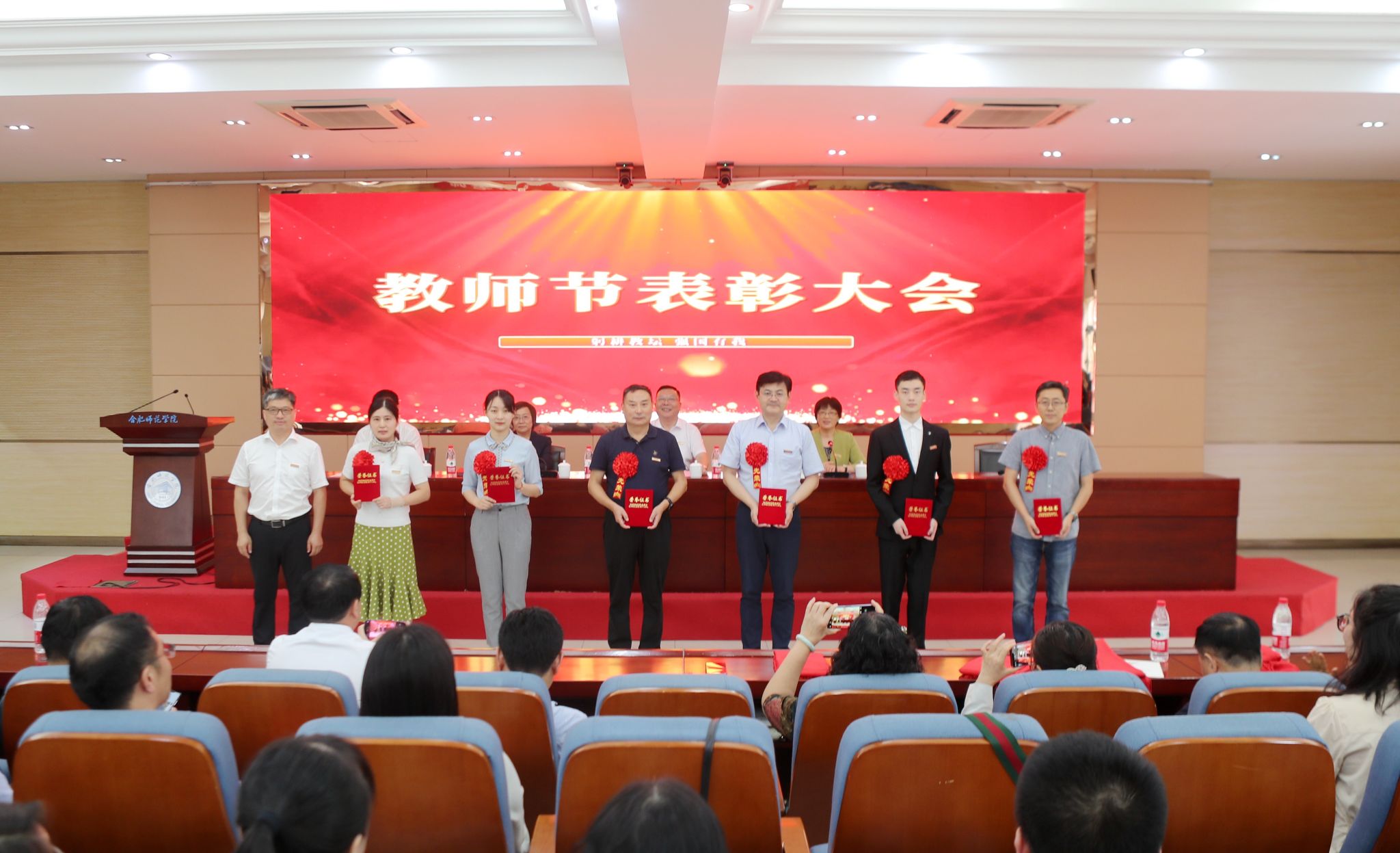 本网讯 金秋时节,丹桂飘香。9月8日,学院在锦绣校区学术报告厅召开庆祝第39个教师节表彰大会暨荣休仪式。院党委书记徐成钢,党委副书记、院长方东玲,党委副书记梁立昌,副院长华银峰,副院长周端明及全体处级干部,受表彰及荣休教职工,参加拜师仪式的教师代表,教师及学生代表等参加会议。会议由方东玲主持。
