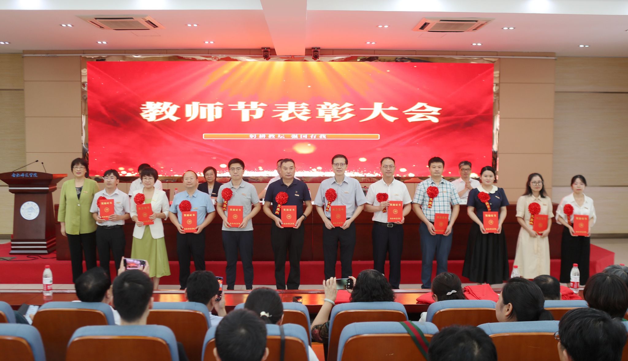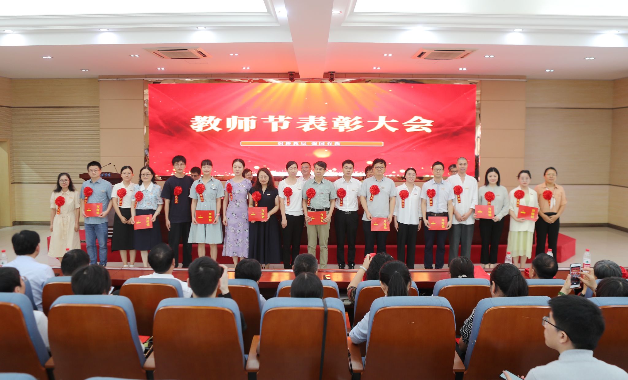 徐成钢指出,今年的教师节是党的二十大胜利召开后的第一个教师节,主题是:躬耕教坛、强国有我,这既是党中央对广大教师提出的殷切期望,也是我们每一位教育工作者的目标追求。今年以来,广大教职员工以习近平新时代中国特色社会主义思想为指导,按照学院部署要求,知重负重、攻坚克难,积极投身岗位工作,推动学院党的建设和办学各项事业取得新的进展。学习贯彻习近平新时代中国特色社会主义思想主题教育取得积极成效;获批国家自然科学和社科基金11项,创历史新高;在第31届世界大学生夏季运动会中我院学子获得3金1银1铜等,成绩的取得,饱含着广大教职员工的心血和汗水,凝聚着广大教职员工的智慧和奉献。学院隆重表彰了一批在教学、科研和管理服务一线作出突出贡献的教职工,他们是坚守三尺讲台、潜心教书育人的楷模,也是广大教职员工学习的好榜样。