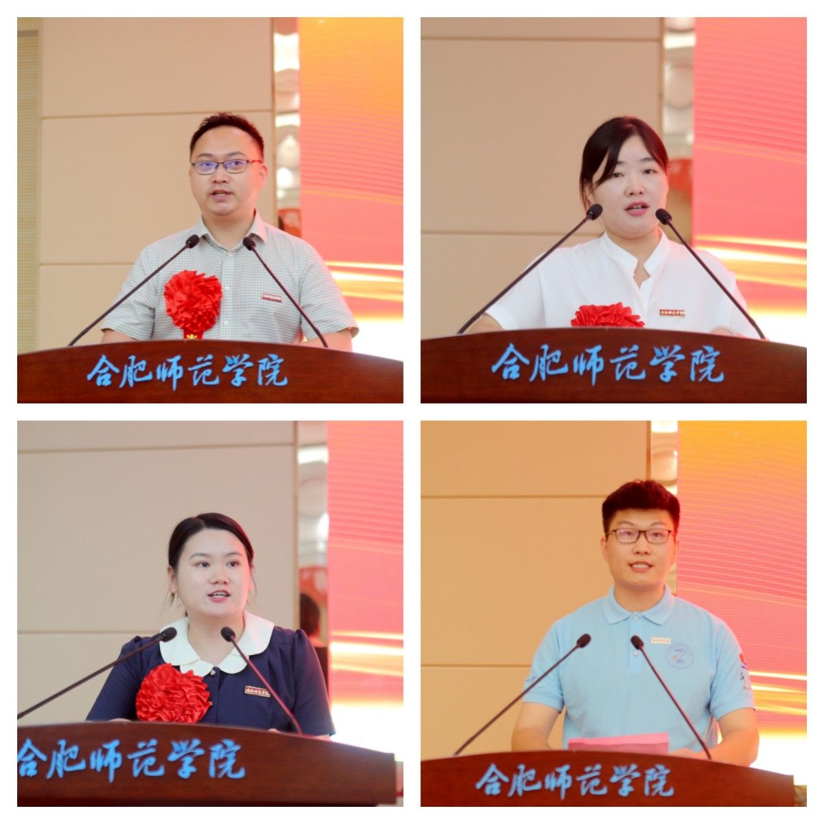 学院第二届“优秀教师”代表生物与食品工程学院副教授、博士陈金武,第二届“优秀教育工作者”代表纪委办公室纪检监察室副主任江丽,2023年度国家基金项目获得者代表、文学院计丽博士发言,畅谈了从事教学科研和管理育人的感受。学生代表顾万里表达了对老师的感恩之情。