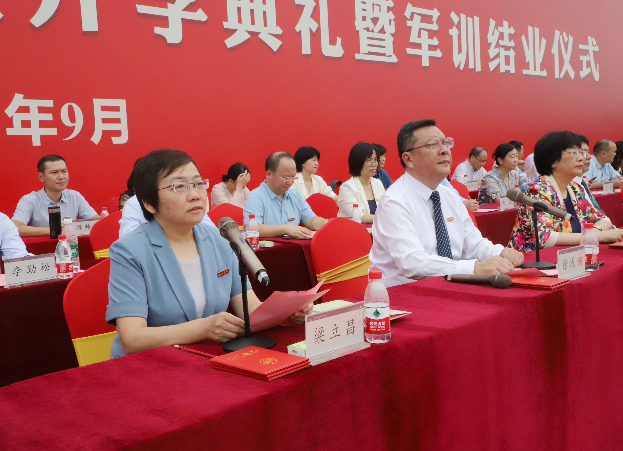 党委副书记、院长方东玲致辞。她代表全院师生员工向2023级新同学表示热烈欢迎;向经受艰苦考验、圆满完成军训的同学们表示热烈祝贺。她向2023级新同学简要介绍了学院办学育人成果,希望同学们牢固树立为合师拼搏争光、为国家作贡献的理想。