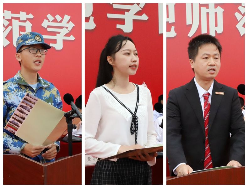 安徽省科学技术奖一等奖获得者、电子信息与集成电路学院张量教授作为教师代表围绕“沉下心来,以家国情怀提升格局境界”“静下心来,完成角色转变确立奋斗目标”“稳下心来,争做科学高峰的攀登者”三个维度,表达了对同学们的期待和祝福。数学与统计学院刘舒妍同学作为老生代表分享了奋斗经历和学习成果,她表示,作为新时代合师人,要汲取“自强不息”的奋进力量,勇担“知行合一”的青年使命,用奋发进取、攻坚克难的实际行动去提升自我、报效祖国。文学院许文浩同学作为新生代表从“争做奋斗者”“争做担当者”“争做实践者”等三个方面,表达了奋勇前行、筑梦合师的坚定决心。