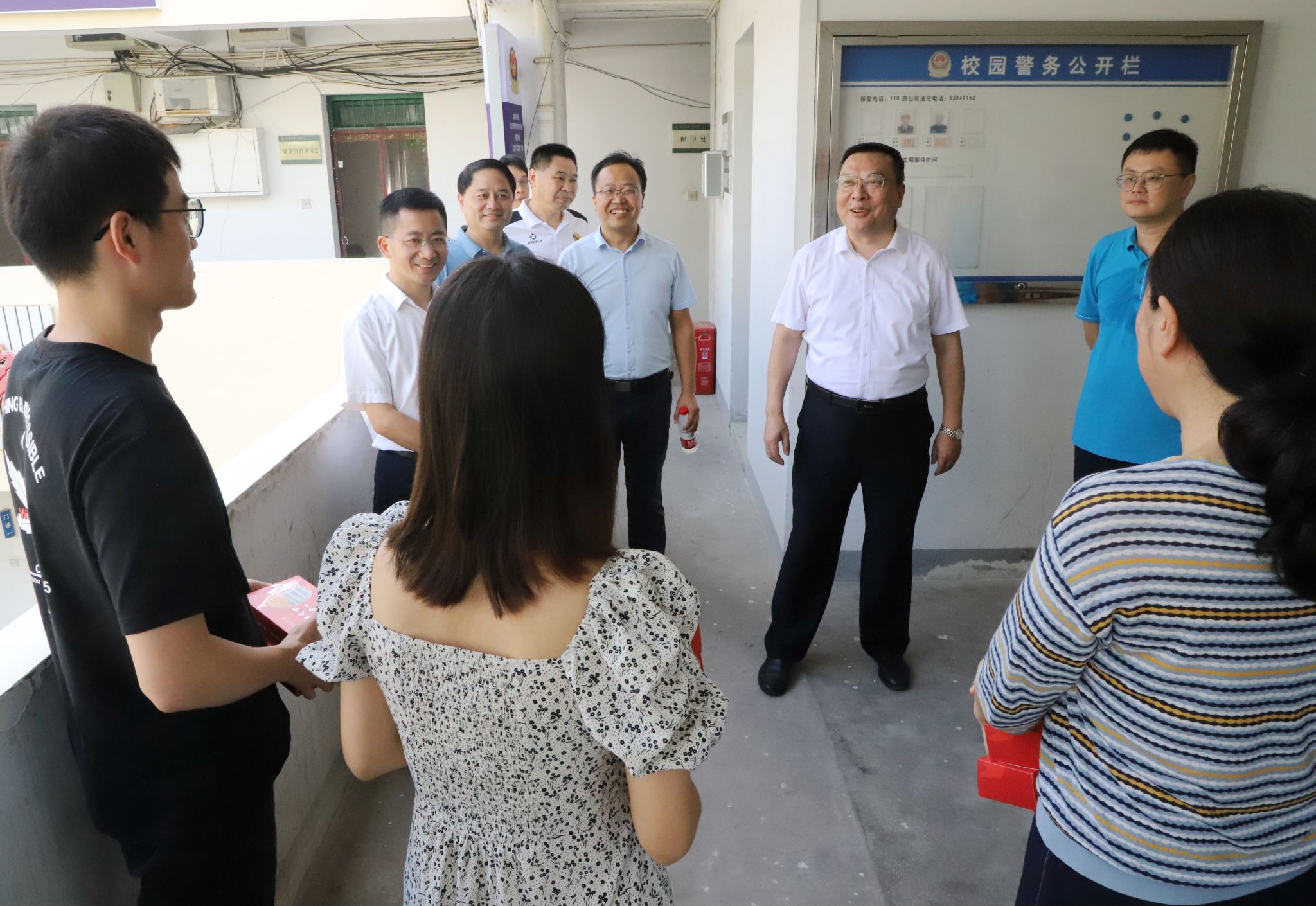 9月29日,徐成钢一行先后实地查看了锦绣校区总值班室、图书馆、食堂、学生公寓等场所。每到一处,都与师生员工亲切交谈,详细了解假期安全保卫、值班值守、后勤保障、学习生活、校园环境卫生等情况,对他们的辛勤工作、努力学习表示肯定,嘱咐大家注意休息、保重身体,并向他们致以节日的问候和祝福。他强调,要坚持底线思维,扎实做好服务保障工作,确保校园安定和谐。
