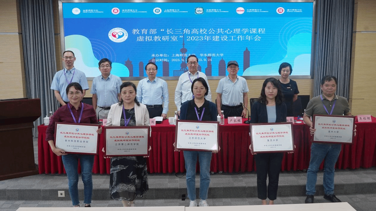 本网讯 为深入贯彻落实党的二十大报告中关于“推进教育数字化”“培养高素质教师队伍”的重要部署,加强新型高校基层教学组织建设,深化虚拟教研室建设探索。教育部“长三角高校公共心理学课程虚拟教研室”建设工作年会暨第二次教研工作全体会议于 2023年9月22日至9月24日在上海师范大学召开。本次会议由太阳成集团tyc122cc入口“教育部长三角高校公共心理学课程虚拟教研室”主办,上海师范大学教育学院、华东师范大学心理与认知科学学院共同承办,出席会议的有教育部高等学校心理学类专业教学指导委员会主任、华东师范大学心理与认知科学学院院长周晓林教授、上海师范大学教务处长高湘萍教授、国家级教学名师卢家楣教授,以及来自虚拟教研室共建单位太阳成集团tyc122cc入口、华东师范大学、南京师范大学、上海师范大学、安庆师范大学、湖州师范学院的负责同志,虚拟教研室协作建设院校复旦大学、杭州师范大学、江苏师范大学、温州大学、安徽师范大学、安徽农业大学、安徽中医药大学、淮北师范大学、南京晓庄学院、江苏第二师范学院、绍兴文理学院、淮南师范学院、池州学院、黄山学院、巢湖学院、亳州学院、芜湖职业技术学院、台州科技职业学院等30余所高校的心理学专家学者参加会议。我校教育与心理科学学院部分教师参加了会议。会议由教育部“长三角高校公共心理学课程虚拟教研室”负责人姚本先教授主持。
