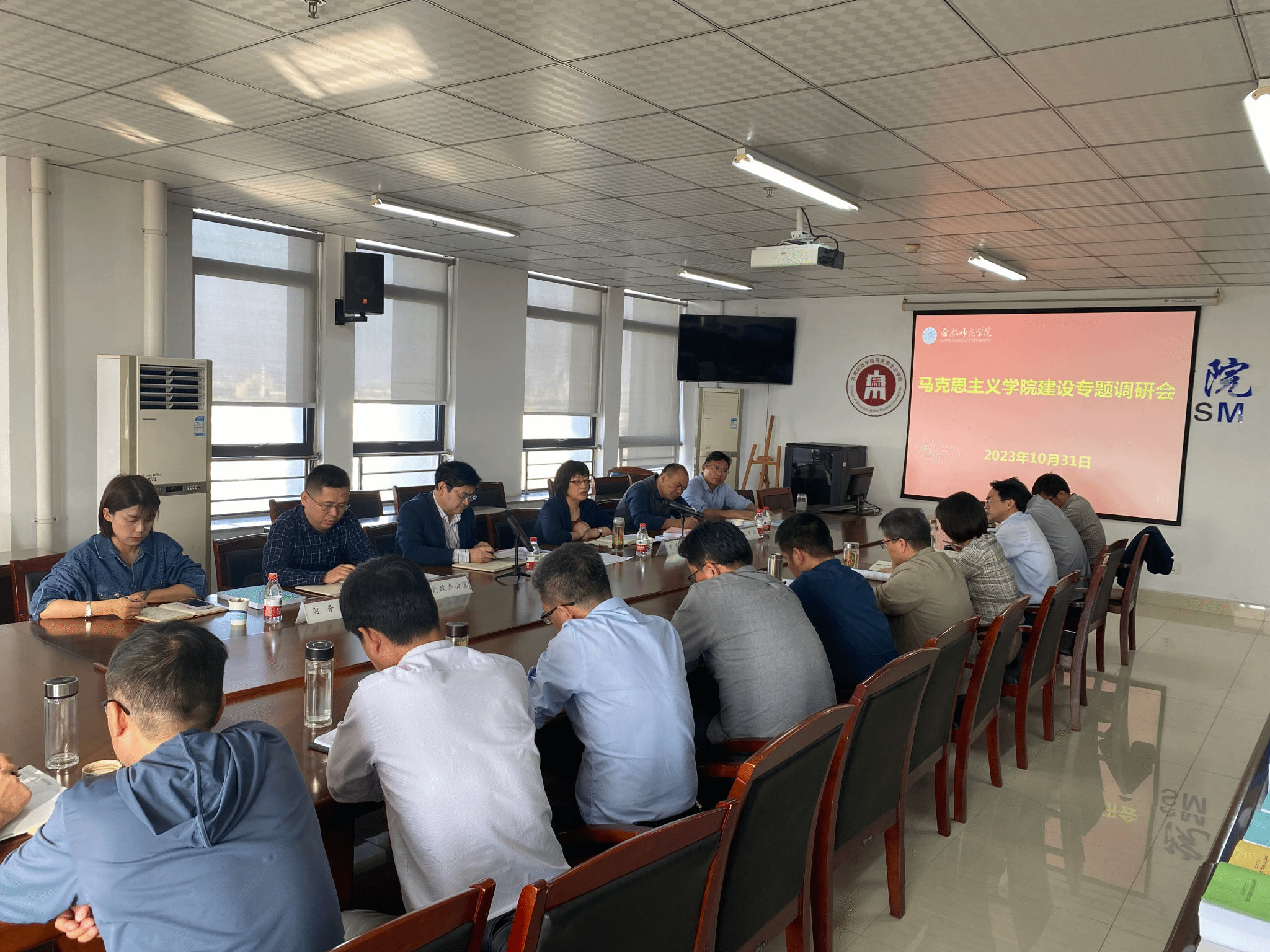 10月31日下午,院党委副书记、院长方东玲深入马克思主义学院开展专题调研并召开现场座谈会,党政办、人事处、教务处、科研处、财务处等部门负责人陪同调研,马克思主义学院党政领导班子、各系(部)、教研室主任及新进教师代表参加会议。