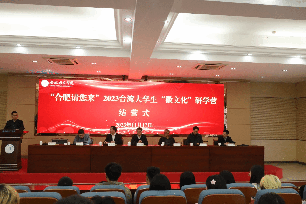 李进生和黄富源先后致辞,他们一致表示,这次“徽文化”研学营是一次珍贵的经历,是两校传统研学营的再一次延续,希望今后两校每年都要在两地进一步推进“徽文化”研学营活动,为两岸青年大学生深入沟通和交流搭建平台,更希望台湾铭传大学有志青年毕业后能来合肥创业、就业,深化两岸人才互通交流。