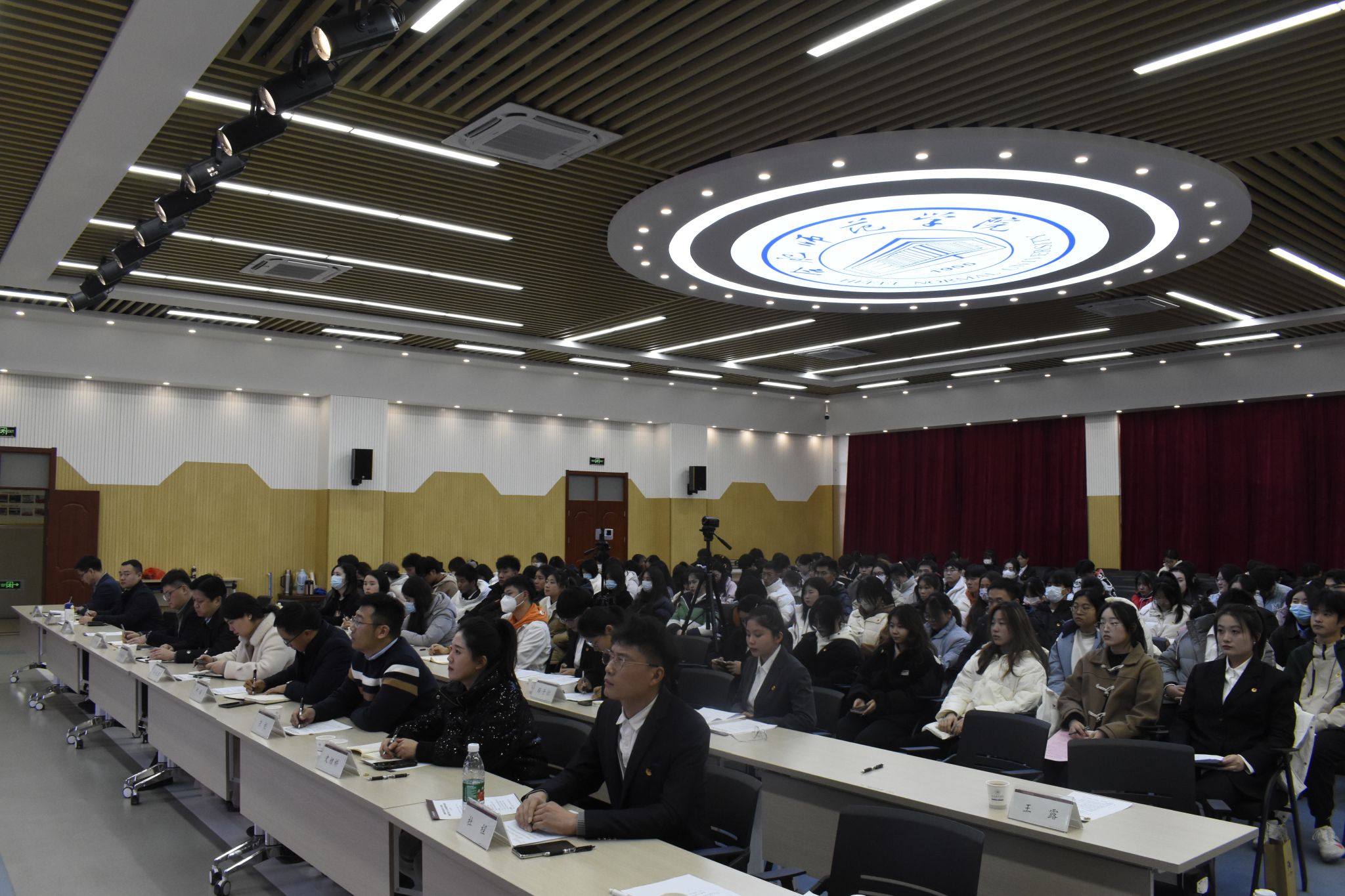 12月13日下午,学院“挺膺担当勇作为”示范主题团课暨青春思政课于锦绣校区大学生活动中心举行,滨湖校区分会场设在博学楼D101教室。团省委有关领导到场指导,院团委全体人员、各二级学院团委书记、第十四期青年马克思主义者培养工程和第四期青春学习营全体学员、2023级班级团支部书记300余人参加活动。