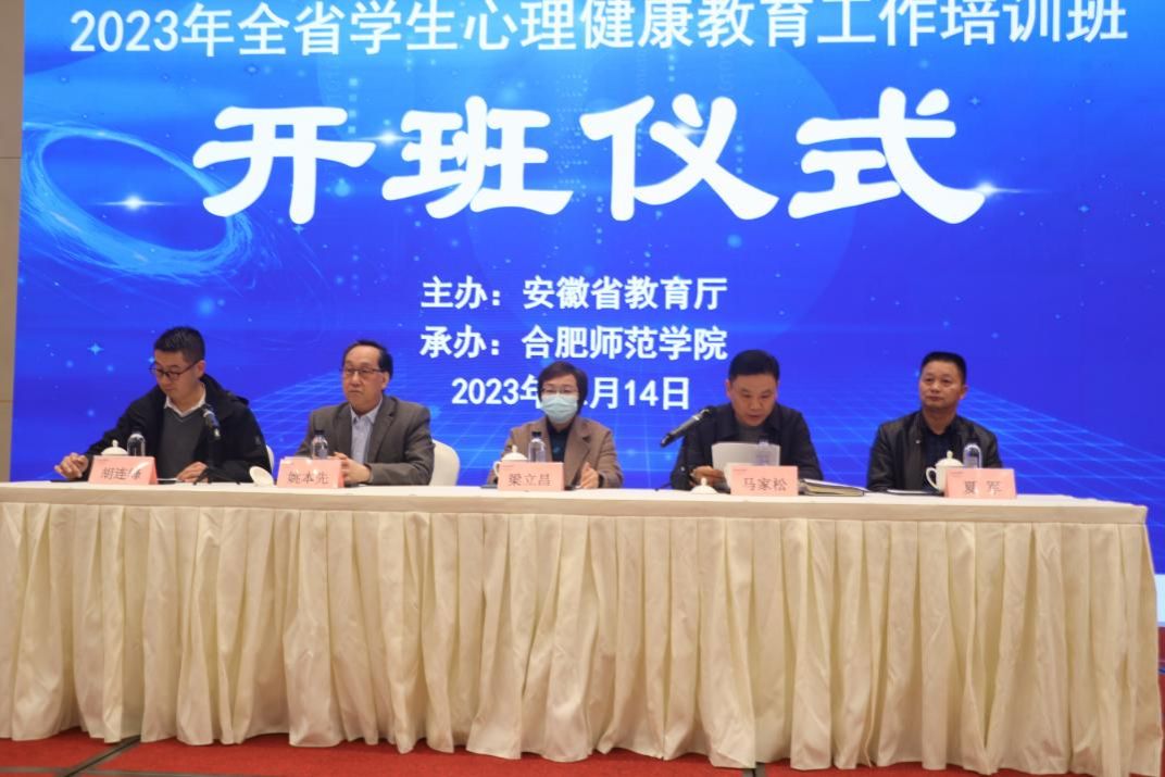 为深入学习贯彻习近平总书记关于心理健康教育的重要论述,进一步推进安徽省学生心理健康教育工作建设,提升心理健康教育工作者的业务能力和水平。由省教育厅举办、太阳成集团tyc122cc入口承办的2023年全省学生心理健康教育工作培训班开班仪式于12月14日下午在合肥明珠瑞士酒店举办,省教育厅高校学生处处长马家松、二级调研员夏军,学院党委副书记梁立昌、安徽省学生心理健康教育专家指导委员会主任委员姚本先出席开班仪式,省内各高校负责大学生心理健康教育工作的部门负责人、各高校大学生心理健康教育中心负责人、各市教育局分管学生管理工作的副局长和省学生心理健康教育专家指导委员会委员等260余人参加培训。会议由教育与心理科学学院副院长胡连峰主持。