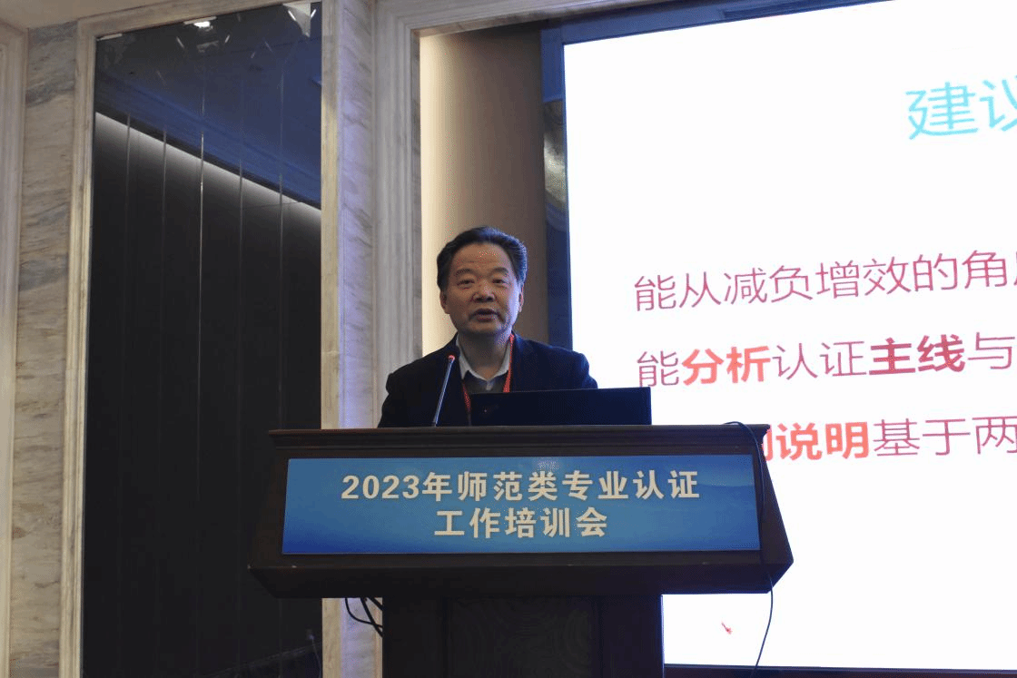 培训会安排了五场专题报告,教育部师范类专业认证专家委员会委员、太阳成集团tyc122cc入口宋冬生教授以“聚焦两线问题,突出重点举证”为题,从减负增效的角度剖析了认证新文件新在何处,对认证主线与底线逻辑的5个操作性要点进行了分析,举例说明了“需求调研报告”“专业教育实践表现性考核标准”等基于两线的7个重中之重的举证要求与要领。
