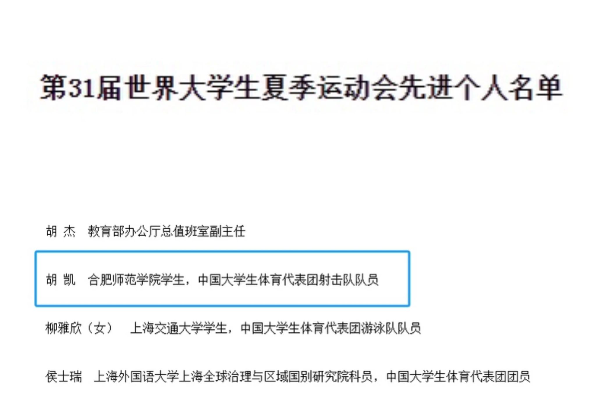 在2023年7-8月举行的第31届世界大学生夏季运动会上,7月30日,我校2017级体育教育(对口)专业学生夏琦与国家队队员获得男子25米手枪速射团体金牌,并以资格赛排名第一挺进男子25米手枪速射决赛,最终取得了第5名的成绩。8月1日,2021级体能训练专业胡凯获得男子10米气手枪金牌,并与国家队队员一起顽强拼搏获得男子10米气手枪团体银牌。8月2日,胡凯与国家队队友奋力拼搏获得10米气手枪混合团体金牌。8月6日,2020级运动训练专业学生苏雨恒与国家队队友团结拼搏以5分42秒27的成绩获得男子八人单桨有舵手决赛第三名,获得铜牌。