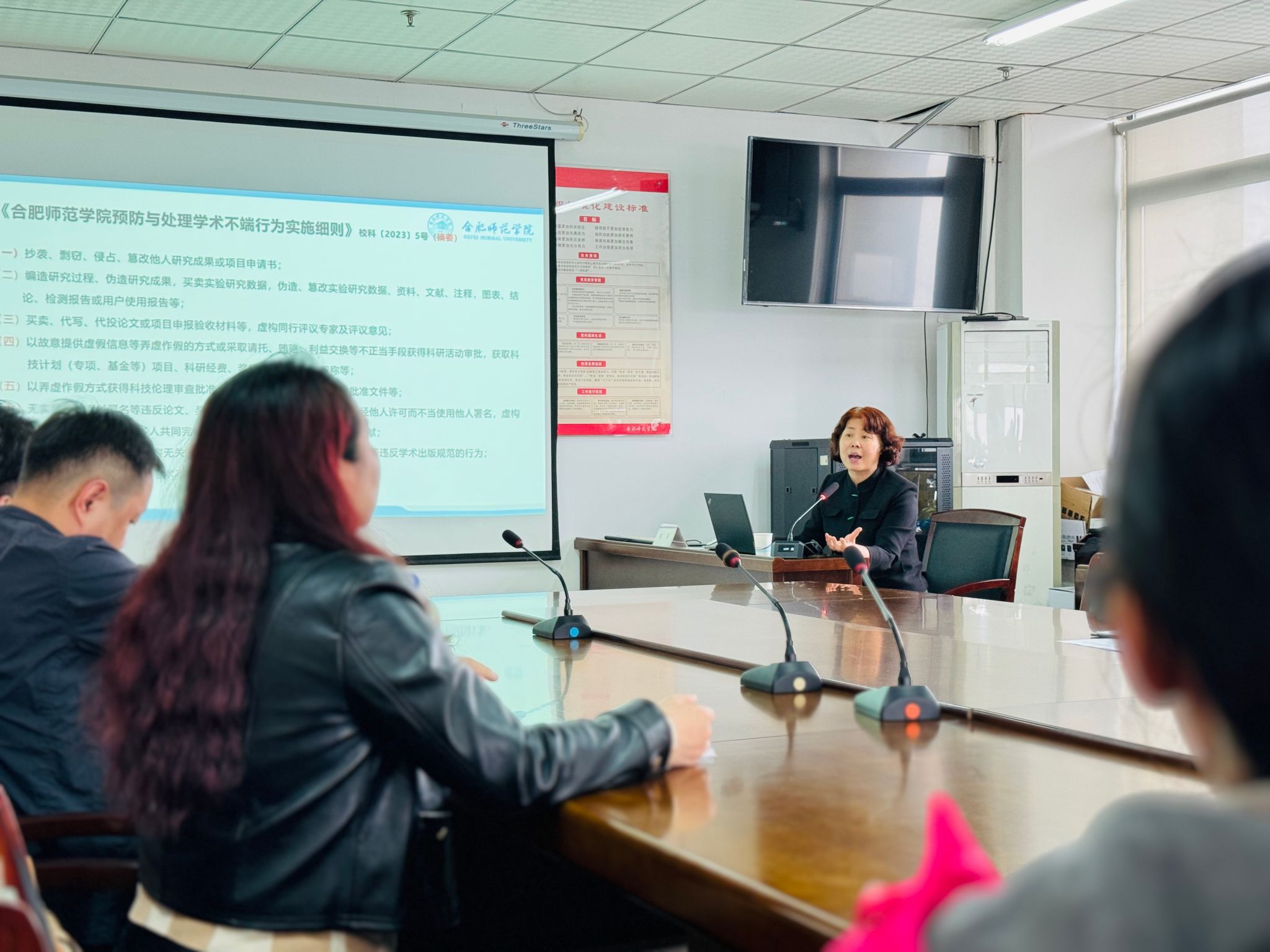 胡昂解读了学校科研管理的主要规章制度,并结合实际案例强调了学术诚信的重要性,对学术不端行为进行了严肃的剖析和警示。她详细阐述了科研项目管理、科研成果管理和科研团队管理“三件套”的理念,提出了纵向项目、横向项目一体双翼、齐头并进的发展思路;围绕学院科研氛围的营造,对各级各类科研项目申报进行了重点辅导。最后系统介绍了2024年度学校的科研工作计划。