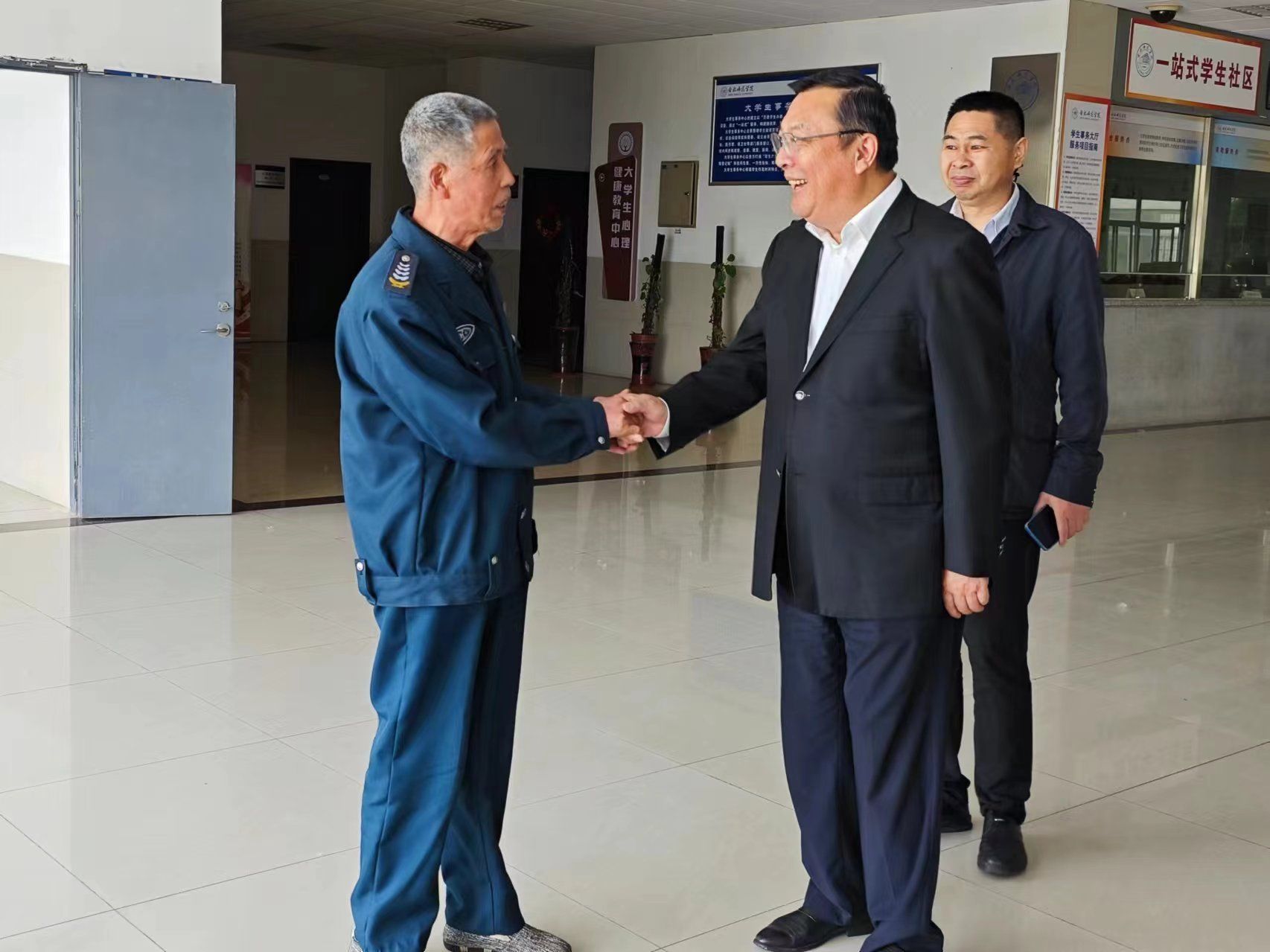 5月1日,院党委书记徐成钢实地走访了警务室,与属地公安民警深入交谈,详细了解警校协同工作情况,感谢属地公安机关对学院的支持和帮助。徐成钢实地查看了各类值班室、校医院、图书馆、门卫岗亭等,详细了解了值班值守、安全保卫、后勤保障等工作情况。每到一处,他都与坚守岗位人员和留校学习同学亲切交谈,对他们辛勤工作、努力学习表示肯定,并致以节日问候和祝福。