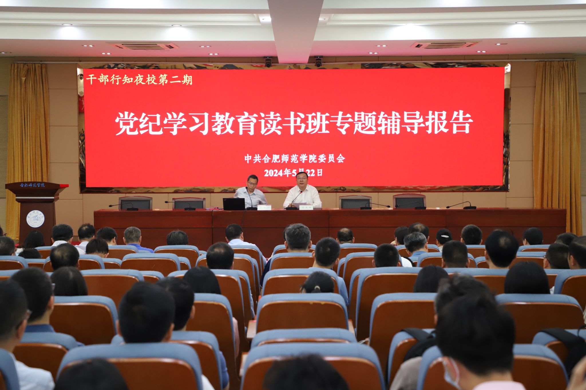 为推动党纪学习教育落到实处、见到实效,根据学院党纪学习教育读书班安排,结合干部行知夜校,5月22日晚,学院在锦绣校区学术报告厅举办党纪学习教育读书班专题辅导报告,省纪委监委第八纪检监察室三级调研员刘振山同志应邀做《中国共产党纪律处分条例》解读专题辅导报告。全体处科级干部、党支部书记、党务秘书近300人参加,院党委书记徐成钢主持报告会。