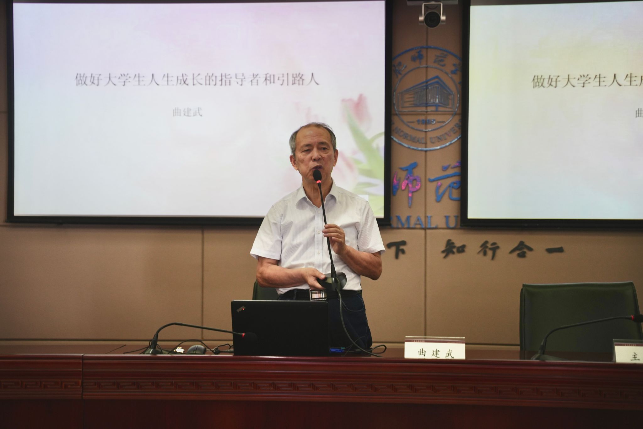 为落实立德树人根本任务,加强辅导员队伍素质能力建设,5月29日下午,学院邀请全国“时代楷模”“全国道德模范”“最美奋斗者”“全国师德标兵”曲建武教授作专题报告。