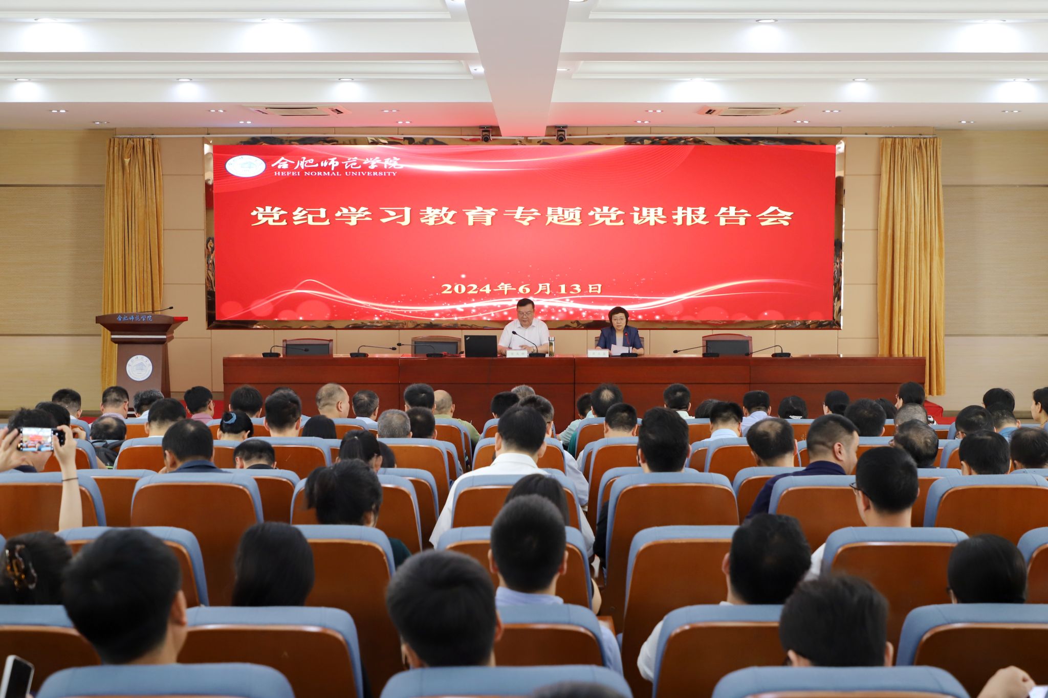 根据党纪学习教育安排,6月13日上午,学院举行党纪学习教育专题党课报告会,院党委书记徐成钢教授作题为《以学促知 知行合一,确保党纪学习教育走向纵深取得实效》专题党课。校党委班子成员、全体处科级干部、党支部书记参加党课学习,院党委副书记梁立昌主持报告会。
