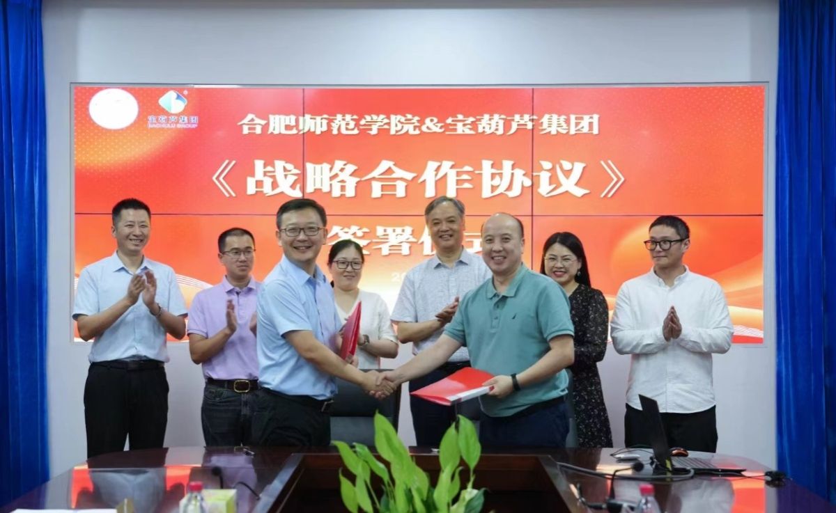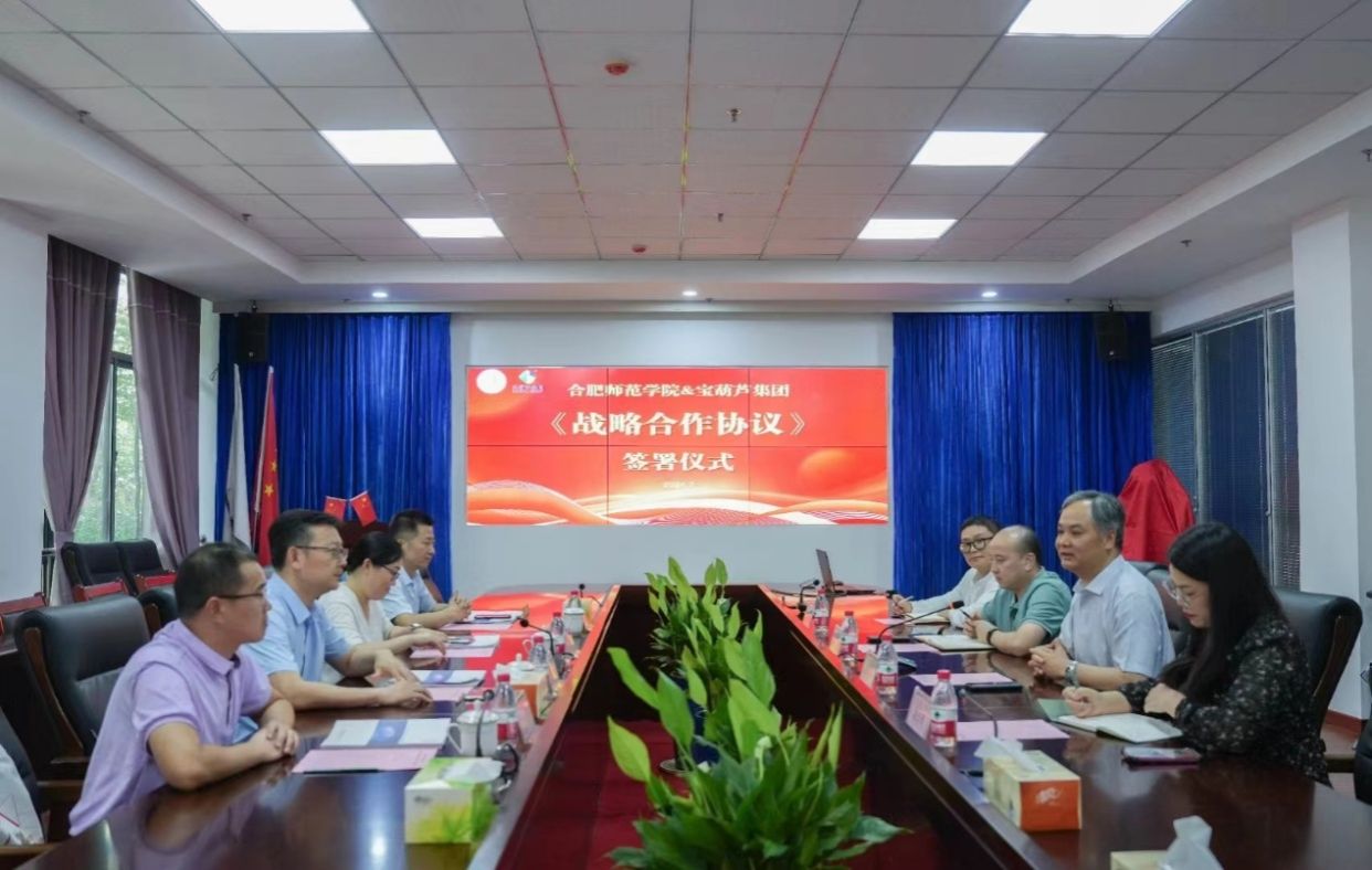 7月4日下午,学院与安徽宝葫芦信息科技集团股份有限公司(宝葫芦集团)举行战略合作签约和大学生教育实践基地揭牌仪式。宝葫芦集团董事长、总裁孙连峰,党支部书记、副总裁程庆乐,技术副总裁吕玉娟,心理学工程师朱智豪,太阳成集团tyc122cc入口学术副院长郝宁,教育与心理科学学院党委书记董萍、副院长胡哲,科研处刘健教授等参加了签约仪式。孙连峰主持仪式。