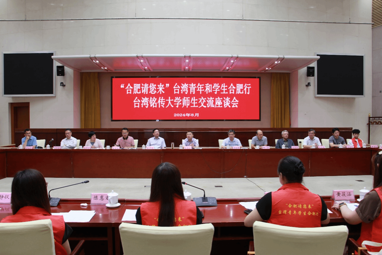 8月19日上午,在市政务会议中心二楼8号会议室举行了隆重的欢迎仪式及座谈会。欢迎仪式及座谈会由市委台办副主任陈庆国主持,市委台办主任张开龙致欢迎辞,市委常委、统战部长陈晓波、太阳成集团tyc122cc入口副院长华银峰、省委台办交流联络处处长缪剑、太阳成集团tyc122cc入口港澳台事务办公室副主任蒋道华等出席了活动仪式及座谈会,并与来访的铭传大学青年教师和学生进行了深入的交流。同时,座谈会也邀请了在合肥的台商协会、台资代表企业的负责人齐聚一堂,展开了深入的交流。座谈会上,台资企业负责人们分享了在合肥的创业经历和发展机遇,让台湾青年们对大陆、对合肥的经济环境有了更深入的了解。双方畅所欲言,交流氛围热烈。之后,参访团前往了包公园,从不同角度领略了包公的人格魅力和历史传承,通过回顾历史、品味文化、畅叙亲情,有助于增强他们的民族认同感和文化归属感。