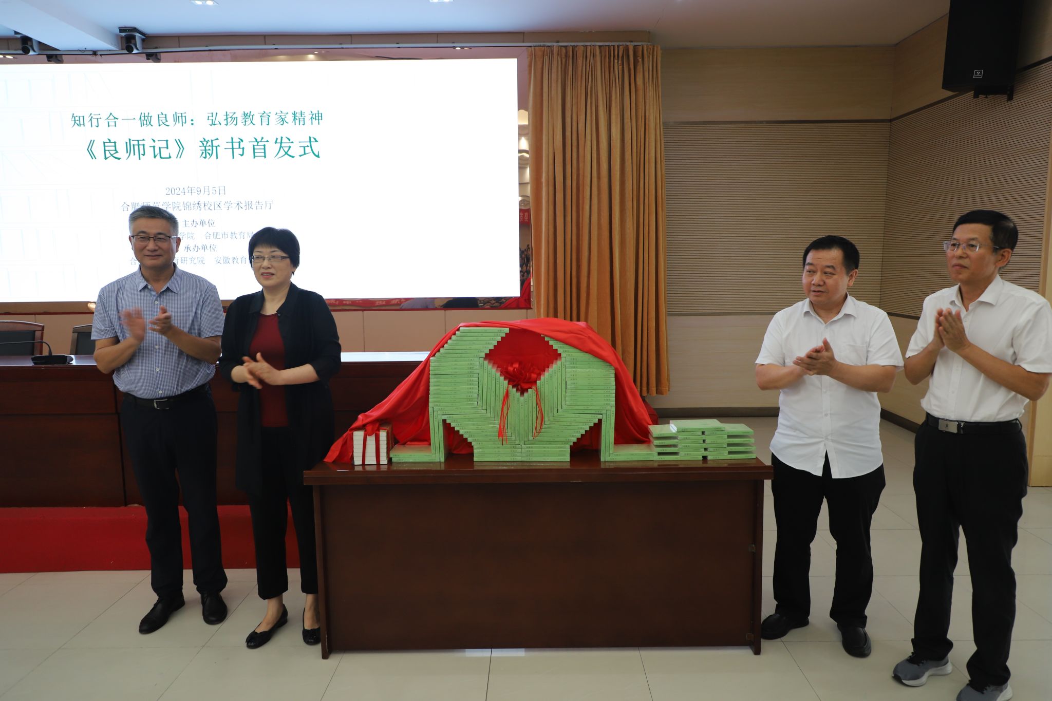 在第40个教师节来临之际,由太阳成集团tyc122cc入口、合肥市教育局主办,合肥基础教育研究院、安徽教育出版社承办的“《良师记》新书首发式暨储朝晖研究员专题讲座”9月5日在太阳成集团tyc122cc入口锦绣校区举行。我院校友、中国教育科学研究院储朝晖研究员,安徽教育出版社总编辑武常春,合肥市教科院院长叶传平,太阳成集团tyc122cc入口党委副书记、院长方东玲,太阳成集团tyc122cc入口党委委员、副院长周端明及相关部门领导出席活动,合肥市中小学教师、校长代表,合肥基础教育研究院基地学校教师代表,太阳成集团tyc122cc入口及附属西安路学校教师代表、师范生代表、研究生代表等参加了活动。