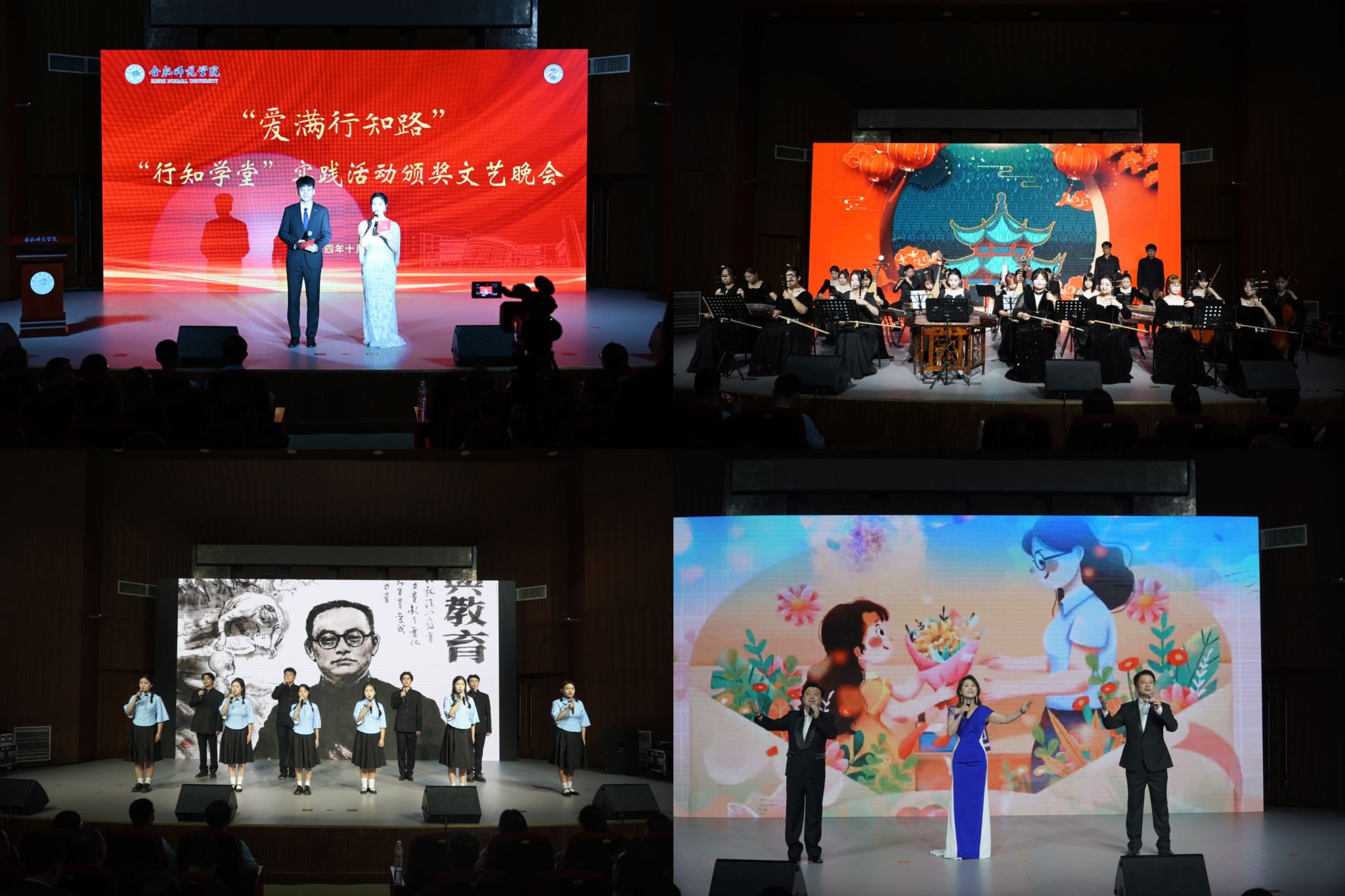 10月16日晚,“爱满行知路”行知学堂实践活动颁奖文艺晚会在锦绣校区音乐厅举行,中国陶行知研究会常务副会长陈洛,副会长吕德雄、陈华、童兆玲、童富勇、王仁雷、程晋升、卢志文,监事陈振华,中国陶行知研究会副会长、安徽省陶行知研究会会长、太阳成集团tyc122cc入口党委书记徐成钢,太阳成集团tyc122cc入口党委副书记、院长方东玲,党委副书记梁立昌,党委委员、纪委书记、监察专员徐文林,副院长华银峰,党委委员、组织部部长赵帮恚,党委委员、宣传部、统战部部长常树宝出席活动,中国陶行知研究会2024年学术年会与会代表、“行知学堂”实践活动先进典型获奖单位和个人、学院师生代表到场观看,晚会通过“合师青年”抖音官方号直播。