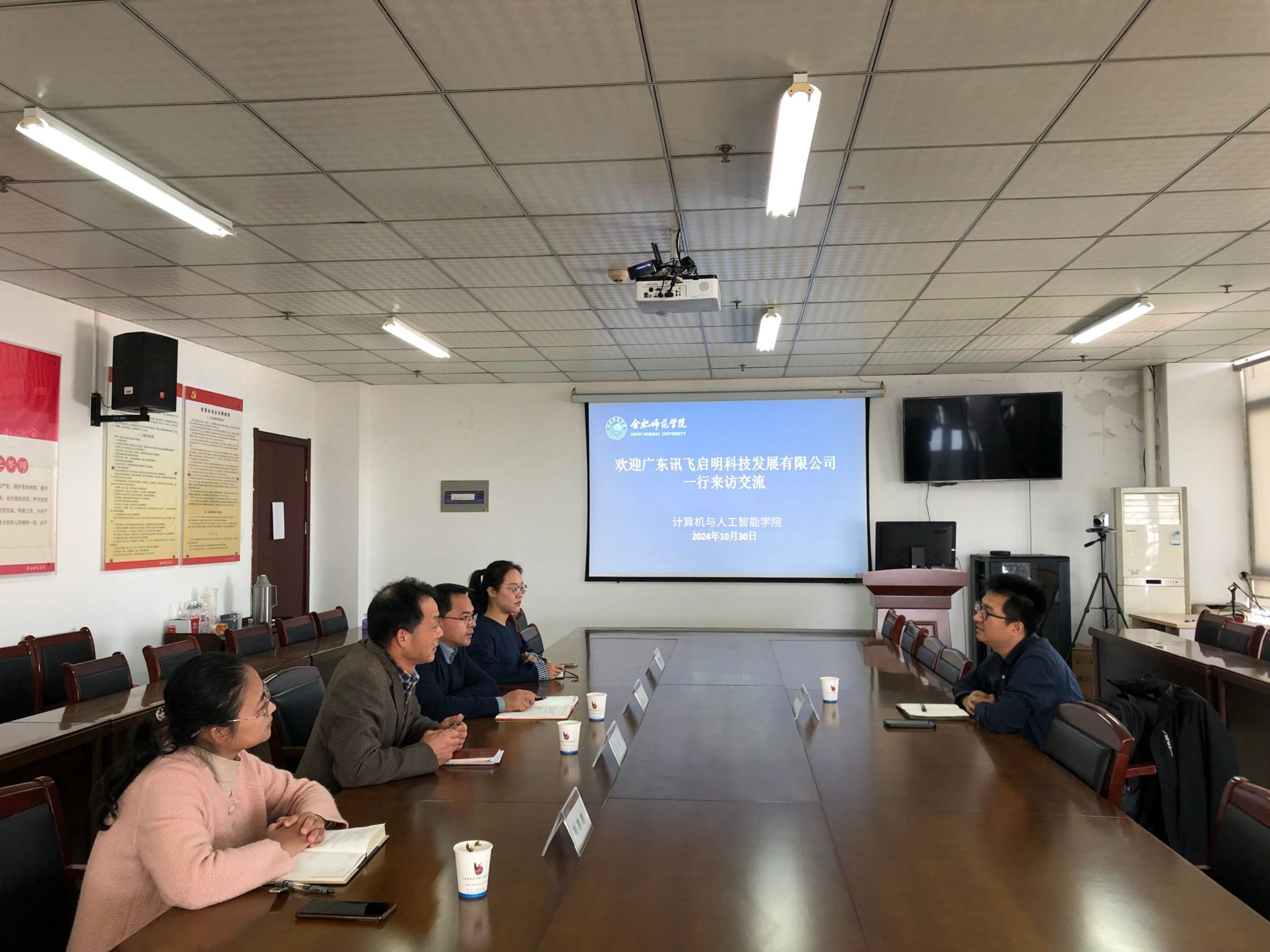 会后,“访企拓岗促就业”校企交流座谈会在行知楼1302会议室举行,计算机与人工智能学院党政班子成员与广东讯飞启明科技发展有限公司、安徽向量维度智能科技有限公司开展座谈,与会双方就人才招聘、企业见习、实训课程等方面进行了充分交流,希望进一步拓展合作领域,深化合作层次,努力实现校企优势互补。