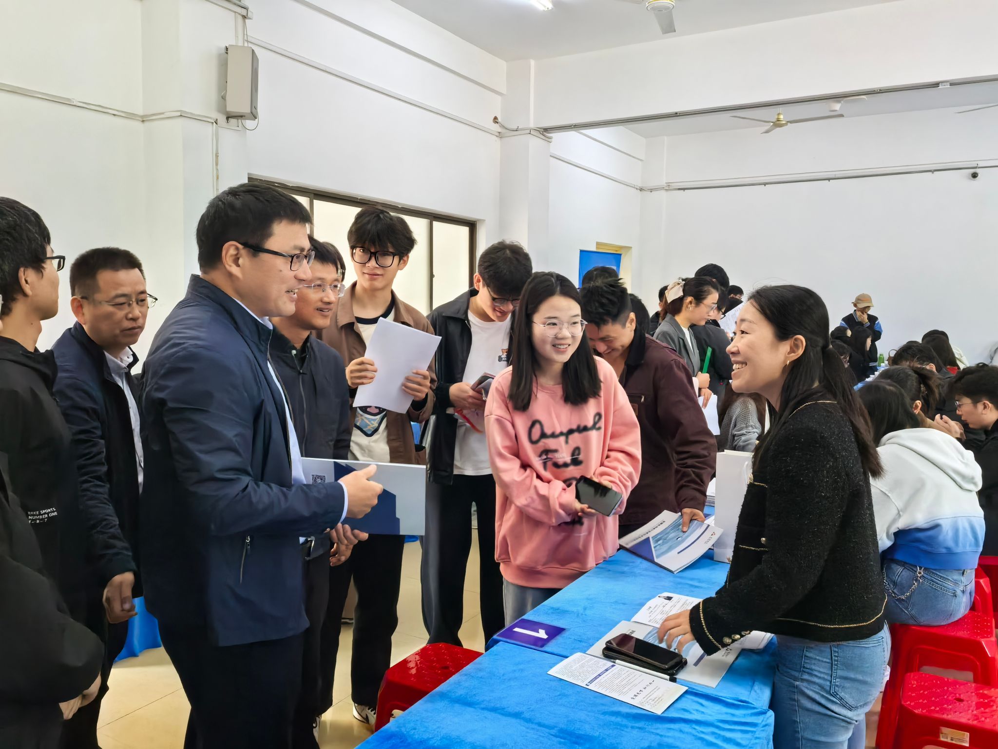 在双选会现场,各企业代表通过现场宣讲、发放宣传册、面对面沟通交流等方式,向同学们介绍单位概况、发展方向、人员需求及福利待遇等。计算机与人工智能学院副院长刘路路和毕业班辅导员龚永琦现场为学生进行简历指导,提供求职建议,帮助学生更好地展示自己的优势和特长,提高求职成功率。毕业生积极与心仪的用人单位沟通交流、投递简历,详细了解就业形势和需求,部分岗位进行了现场面试。