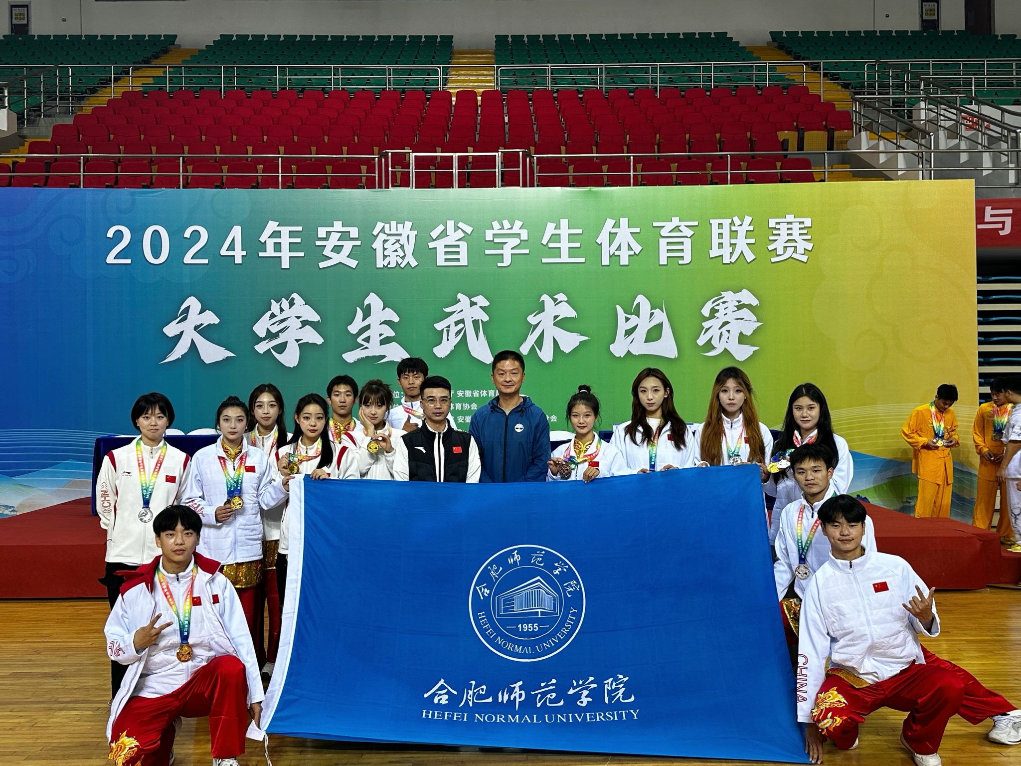 本次省大学生武术套路比赛展现了合师武术项目教学训练的高水准、高水平、高质量,优异的成绩更是学院竞技体育综合实力提升和学校人才培养质量提升的重要体现。在省运会接下来的比赛中,合师学子将继续发扬中华体育精神和奥林匹克精神,充分展现“自强不息 追求卓越”的合师精神,继续拼搏,再创佳绩,为校争光。(体育科学学院:张猛、崔高峰)