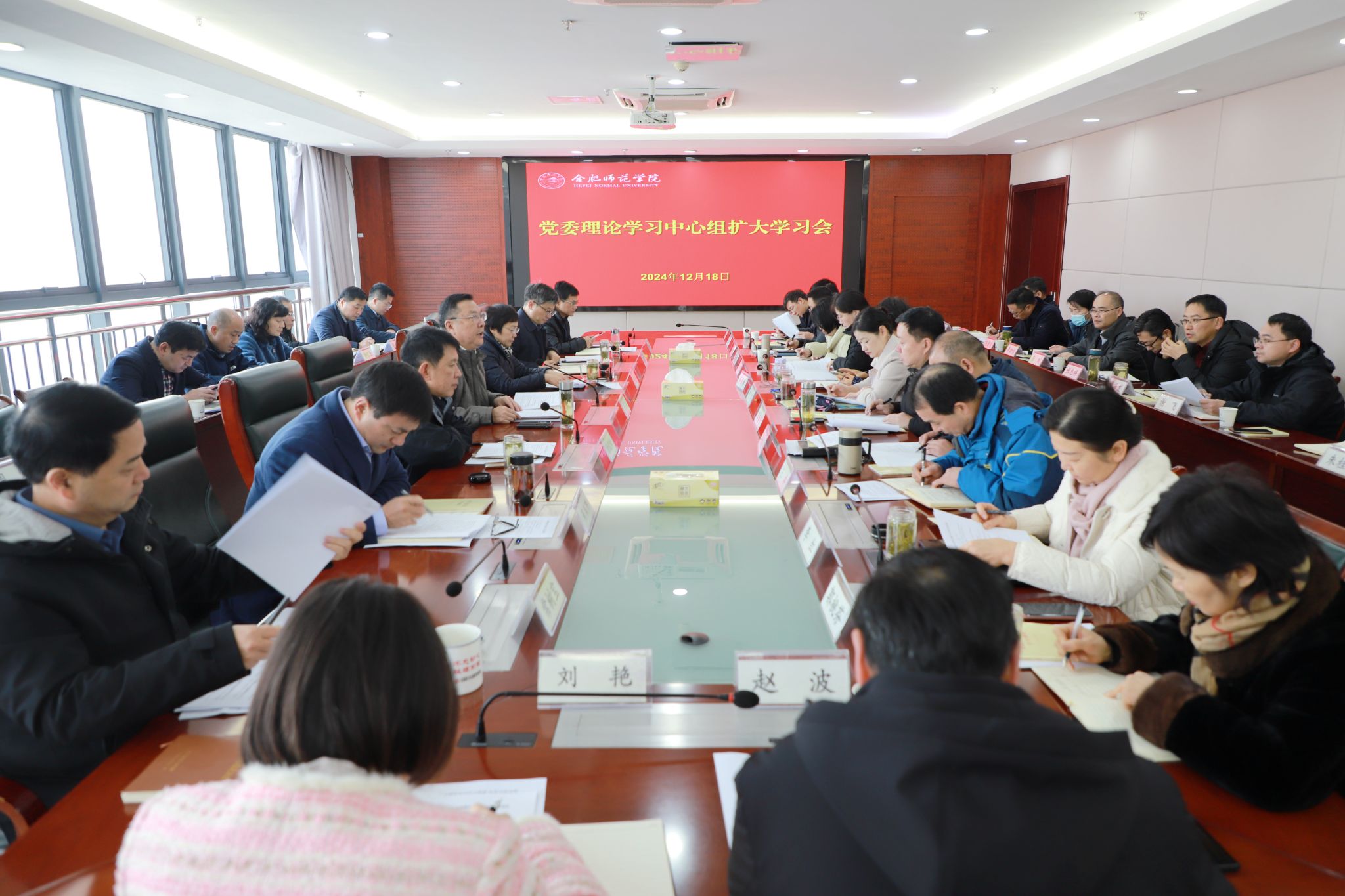 12月18日上午,学院在行知楼2008会议室举行党委理论学习中心组扩大学习会。党委书记徐成钢主持会议并讲话。党委理论学习中心组成员,各院系级党委(党总支、直属党支部)书记,各学院院长,各部门主要负责人参加学习。