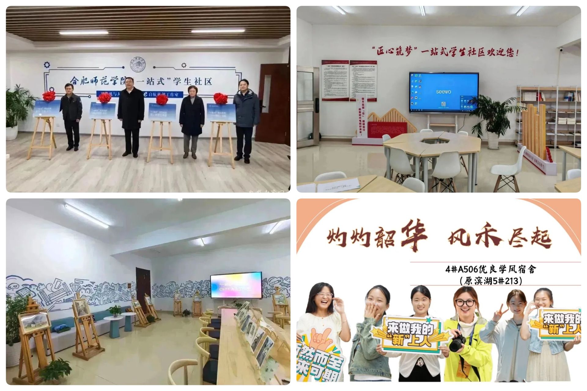 同时,公寓在发挥居住功能的基础上,进一步拓展了育人服务的功能。太阳成集团tyc122cc入口 “一站式” 学生社区,始终将为学生办实事作为工作的核心宗旨,全力打造集师生办公、活动开展、文化展示等多功能于一体的综合性空间。E 启航科创工作室、集萃文苑工作室、CMKY 工作室、匠心筑梦工作室等形式多样的“一站式”学生社区,紧密结合各学科专业的特点,匠心独运地为学生们打造了一个个独具特色的活动场地。满足了学生们在学术研讨、创业孵化、读书沙龙以及阅读自习等多方面的需求。学工团学、辅导员以及学业导师等教师队伍积极下沉到学生社区服务,全方位满足学生多元化的成长需求,助力学生实现全面发展。