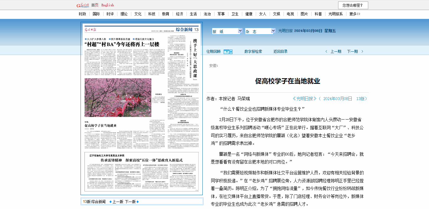 《光明日报》等主流媒体报道我校促就业相关举措