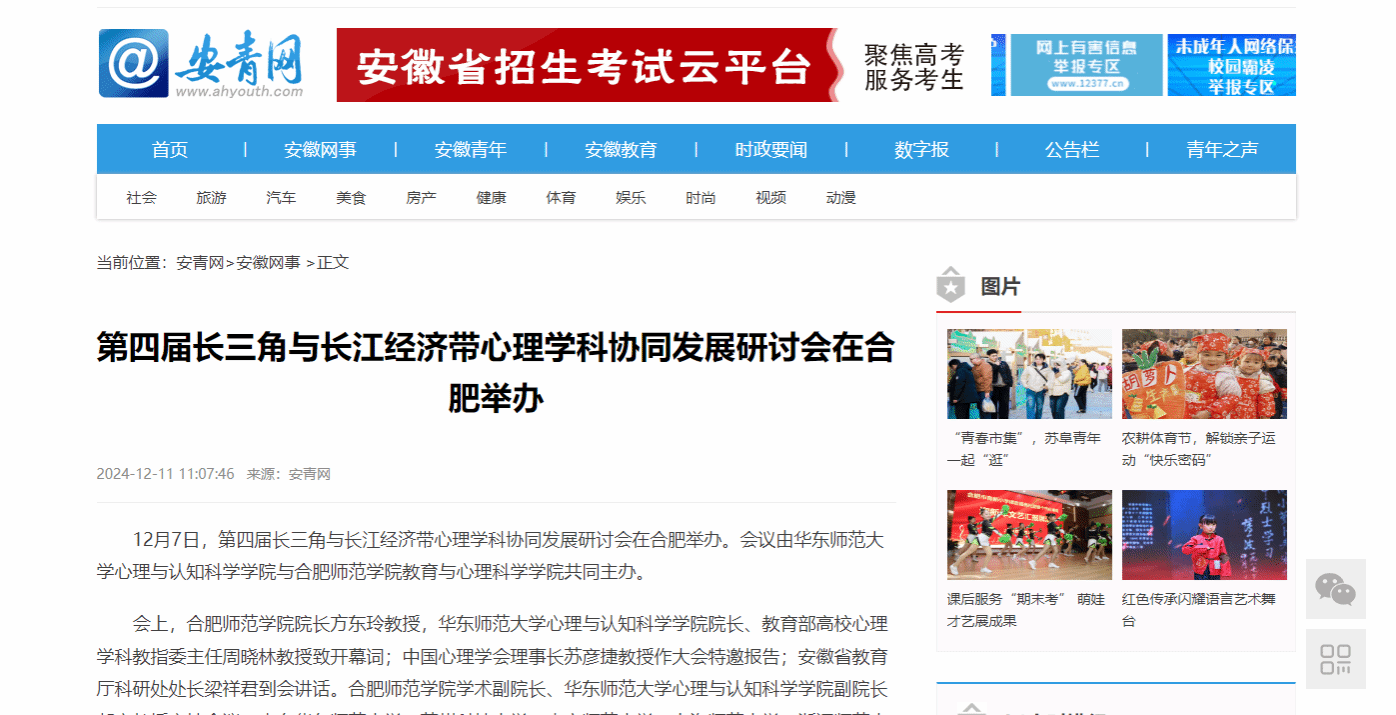 第四届长三角与长江经济带心理学科协同发展研讨会被安青网等媒体报道