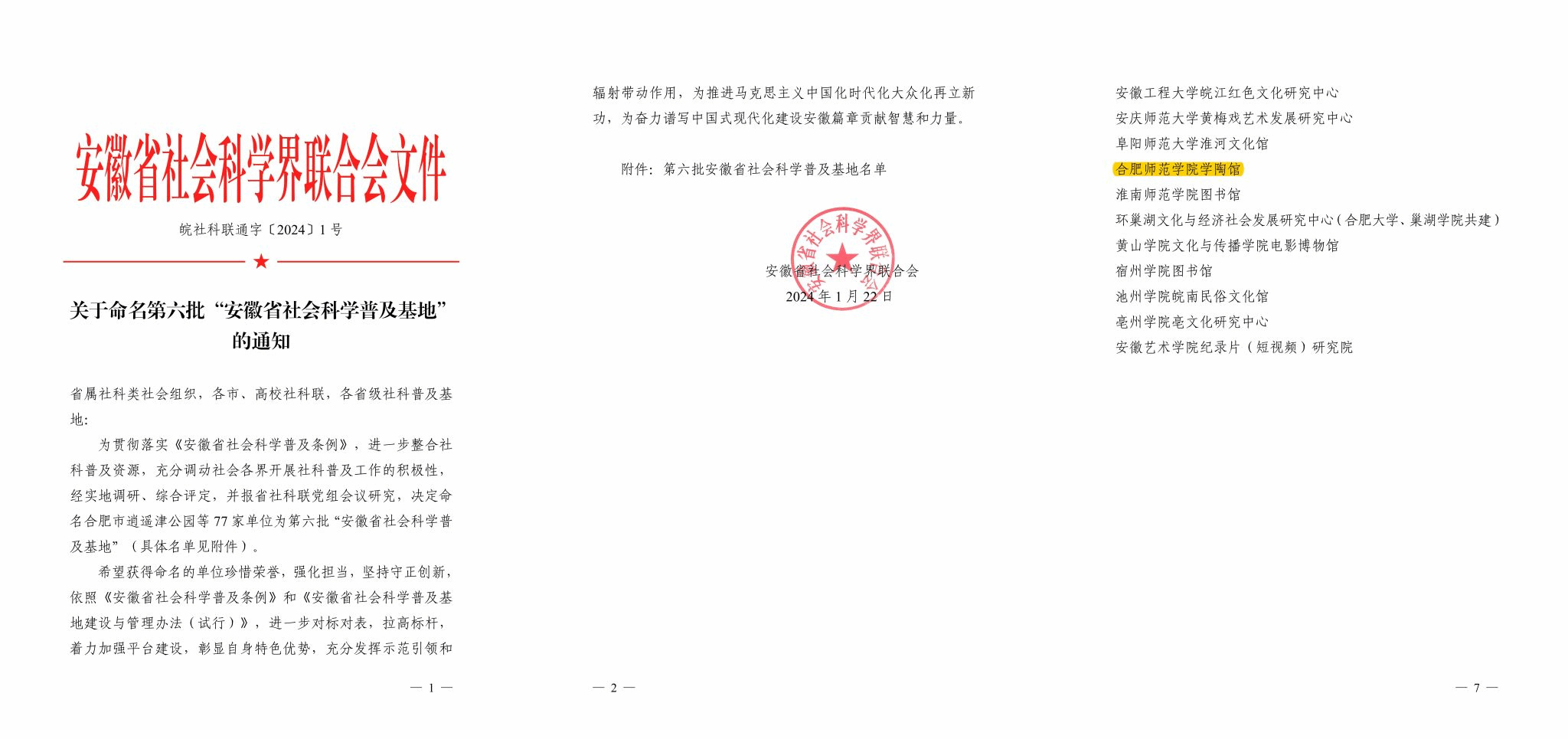 学陶馆获“安徽省社会科学知识普及基地”称号