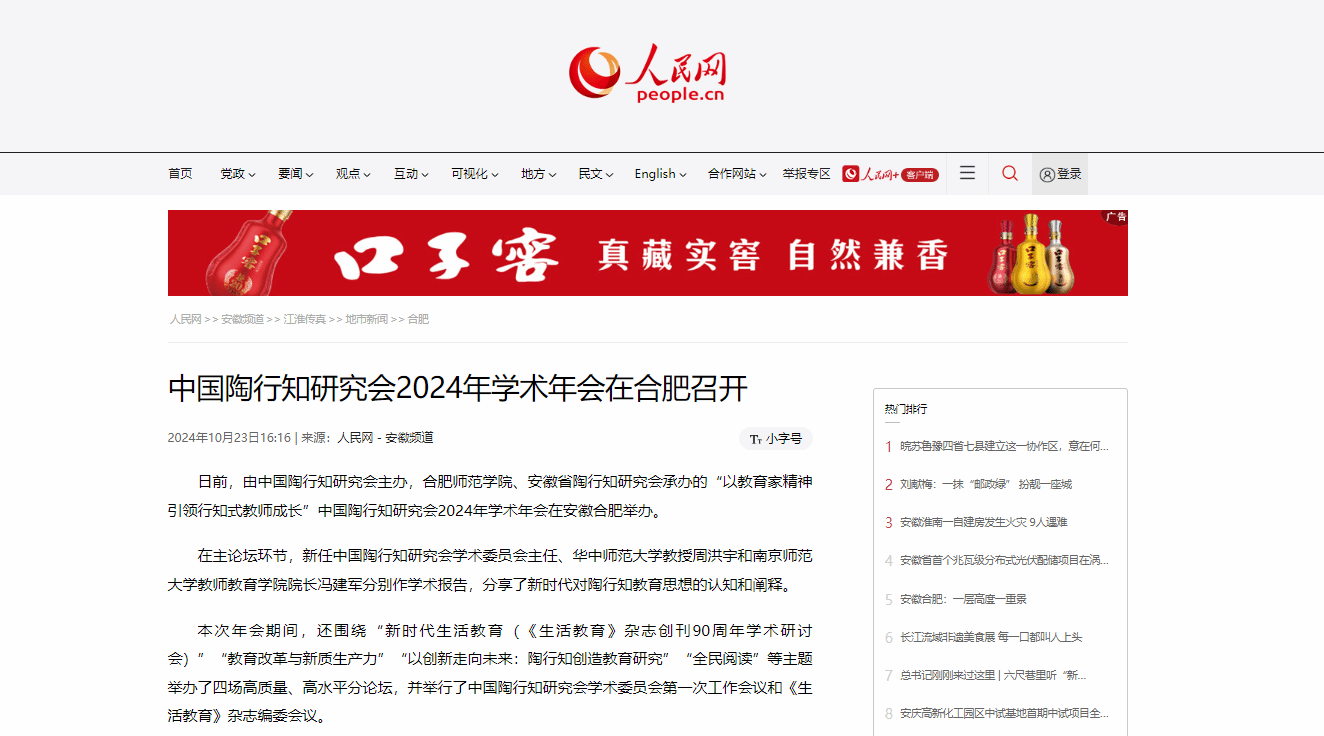 中国陶行知研究会2024年学术年会获得人民网、新华社、《光明日报》等中央主流媒体报道