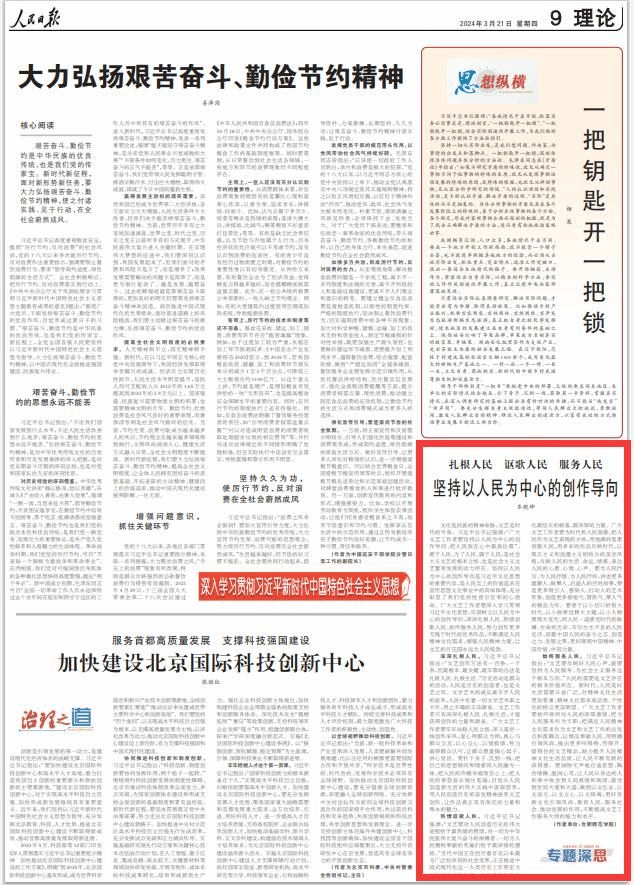 《人民日报》理论版(第9版)发表《坚持以人民为中心的创作导向(专题深思)》