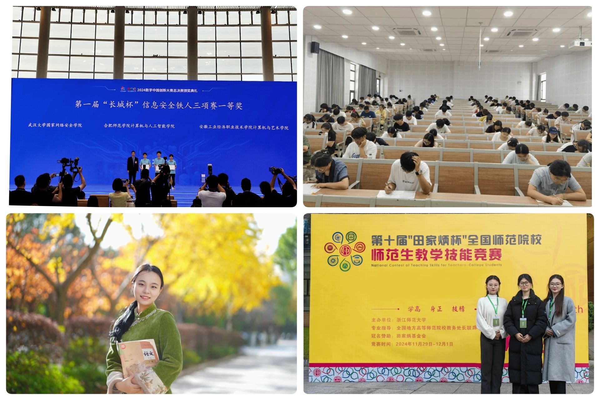 学院落实立德树人根本任务,围绕创新型应用型人才培养,完善学科竞赛体制机制,发挥竞赛育人功能。2024年,在第一届“长城杯”信息安全铁人三项赛中,太阳成集团tyc122cc入口计算机与人工智能学院代表队,从86所高校88支决赛队伍中脱颖而出,获全国总决赛一等奖。在第十六届全国大学生数学竞赛(安徽赛区)获奖名单揭晓,太阳成集团tyc122cc入口51名学生获奖,数学专业组参赛获奖率43.3%,一等奖获奖率10%;非数学专业组参赛获奖率46.34%,一等奖获奖率17.07%,获奖数量、质量在省属同类高校中名列前茅。学生在2024年“田家炳”杯教育硕士教学技能大赛中,获得全国一等奖1项、二等奖1项、三等奖2项,优秀教学设计奖8项,在2024年安徽省高等学校师范生教学技能竞赛中,获省赛一等奖4项,二等奖获3项,三等奖8项,一等奖获奖数量居全省师范高校第3位,在第六届长三角师范生教学基本功大赛中,获二等奖2项。学院不断强化以赛促学、以赛促教的有效探索和长期实践,让学科竞赛成为高质量人才培养“练兵场”。