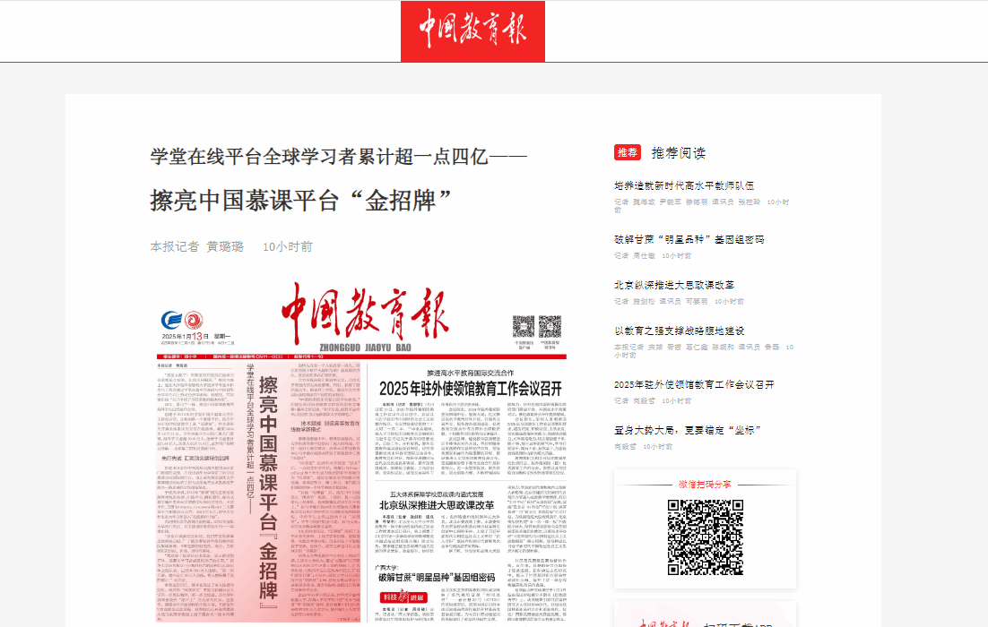 《中国教育报》头版头条对钱丽娜中印全球融合式课堂项目进行报道