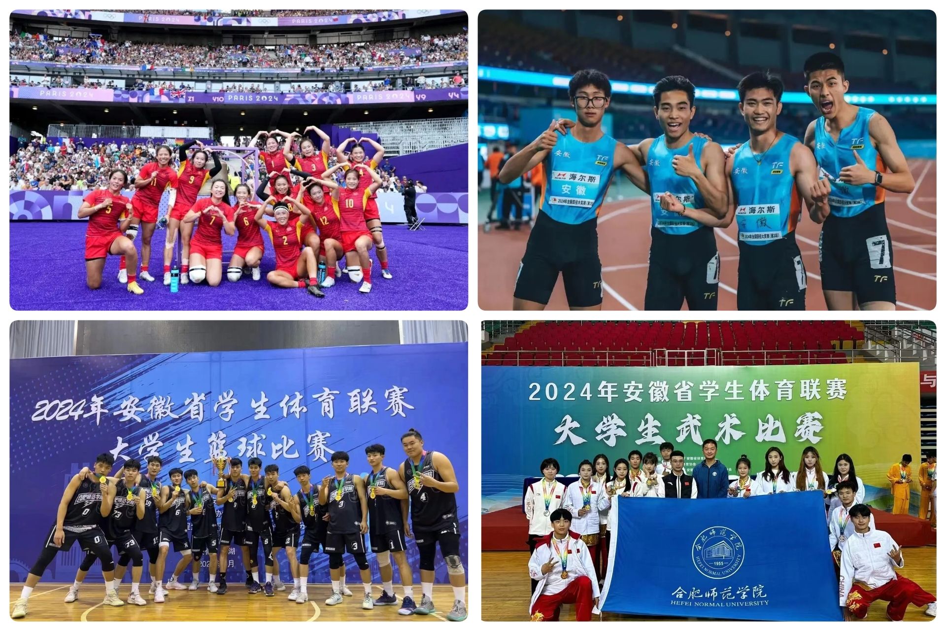 在充满挑战和机遇的2024年,合师学子在各级各类体育竞赛中展现出高水平的专业能力,190余名学生、15位教练员、16支体育代表队参加全国大学生体育比赛和安徽省大学生体育联赛,他们全力以赴,发扬“自强不息,追求卓越”的合师精神,最终获得18个冠军、20个亚军、20个季军的好成绩,共计获奖101项,多个项目打破赛会记录,并实现历史性突破,展现合师学子努力拼搏、奋勇争先、团结协作、永不言败、积极向上的精神风貌。在巴黎奥运会七人制橄榄球女子5-6名排名赛中,我院2016级运动训练专业周燕与国家队队友一起顽强拼搏,获得第6名,创造队史奥运会最佳战绩。2021级运动训练专业李翔同学代表安徽省,与队友协作夺得男子4x400米接力赛金牌,获得全国田径大奖赛(第2站)冠军,创安徽省代表队在该项赛事上的最好成绩。男子篮球队连续七年荣获全省冠军,女子足球和男子足球队分别获得亚军和季军;田径代表队参加16个项目中的20项比赛,获得9个冠军、1个亚军、1个季军,共获奖20项的优异成绩,并打破4项赛会纪录;武术队在2024中国大学生武术套路锦标赛等赛事中斩获5个冠军、5个亚军、10个季军等好成绩,同时获得体育道德风尚奖……合师学子在各类高水平赛事中闪耀光芒,为校争光,充分展现“自强不息 追求卓越”的合师精神,也是深化特色体教融合战略、实现高水平竞技体育强省目标的重要体现。