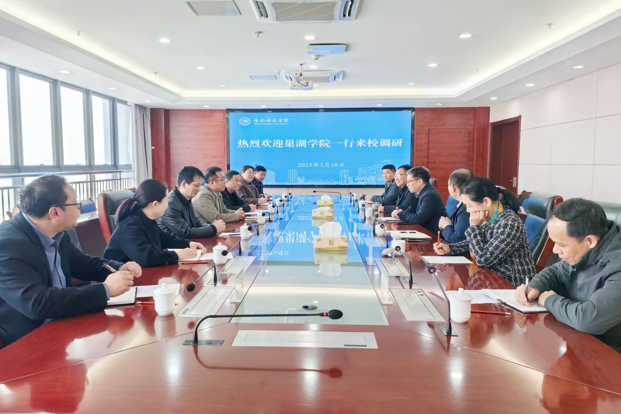 3月18日,巢湖学院党委委员、副院长周祥一行来我院考察交流。院党委委员、副院长华银峰及相关部门负责人接待了周祥一行。会议由华银峰主持。