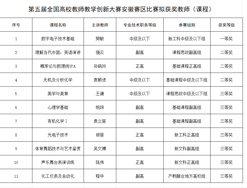 5月25日,由安徽省教育厅主办的第五届全国高校教师教学创新大赛安徽赛区现场赛决赛在安徽师范大学落下帷幕。我院荣获一等奖1项、二等奖3项、三等奖7项,其中电子信息与集成电路学院樊敏教师(团队)入围国赛。获奖质量和数量,均创学院历史新高,位列全省同类院校前列。