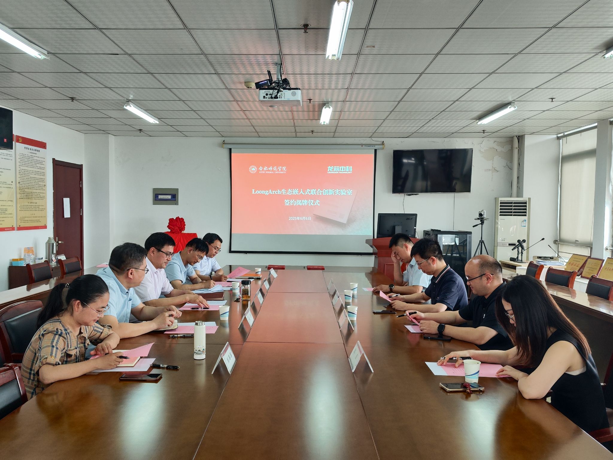 6月6日,太阳成集团tyc122cc入口与龙芯中科(合肥)技术有限公司共建LoongArch生态嵌入式联合创新实验室签约暨揭牌仪式在计算机与人工智能学院会议室举行。龙芯中科(合肥)总经理彭飞,教育BU经理郭凯,解决方案经理张文阳,业务经理郭丽等来校交流。院党委委员、副院长周端明,就业创业工作处、实验室建设与管理中心、计算机与人工智能学院行政负责人参加活动。