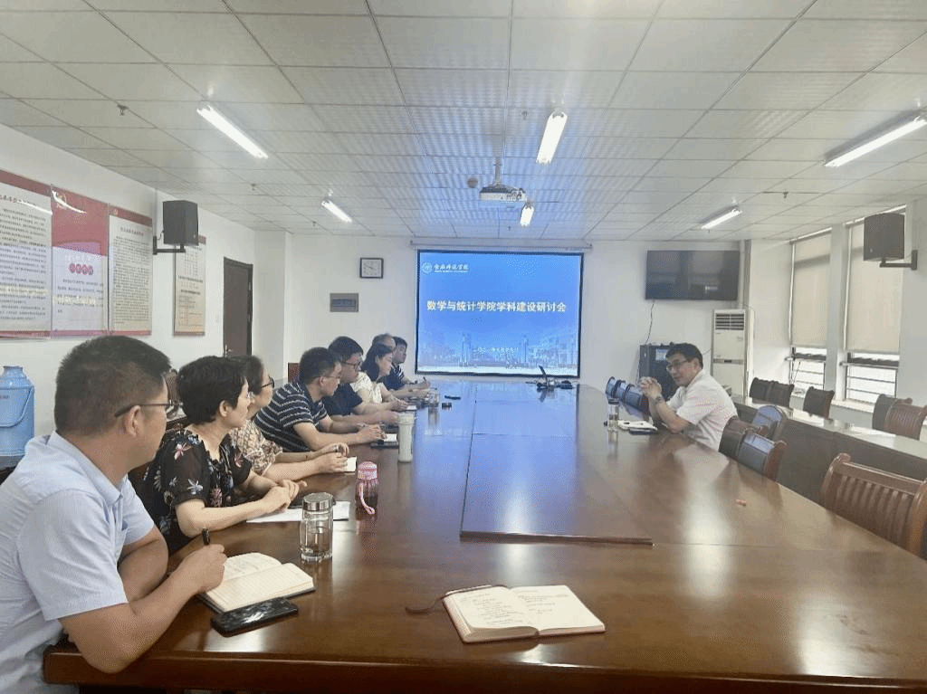 会上,副院长杨刘对数学、统计学两个一级学科建设基本情况进行汇报,对照硕士学位授权点申请的基本条件,分析了第二轮申报数学一级学科学术硕士学位点和应用统计学专业硕士学位点建设的现状与存在的差距,就存在的困难与问题,提出了下一步改进措施与建议。学院领导班子成员及各系部主任就学科建设相关问题进行了交流研讨。