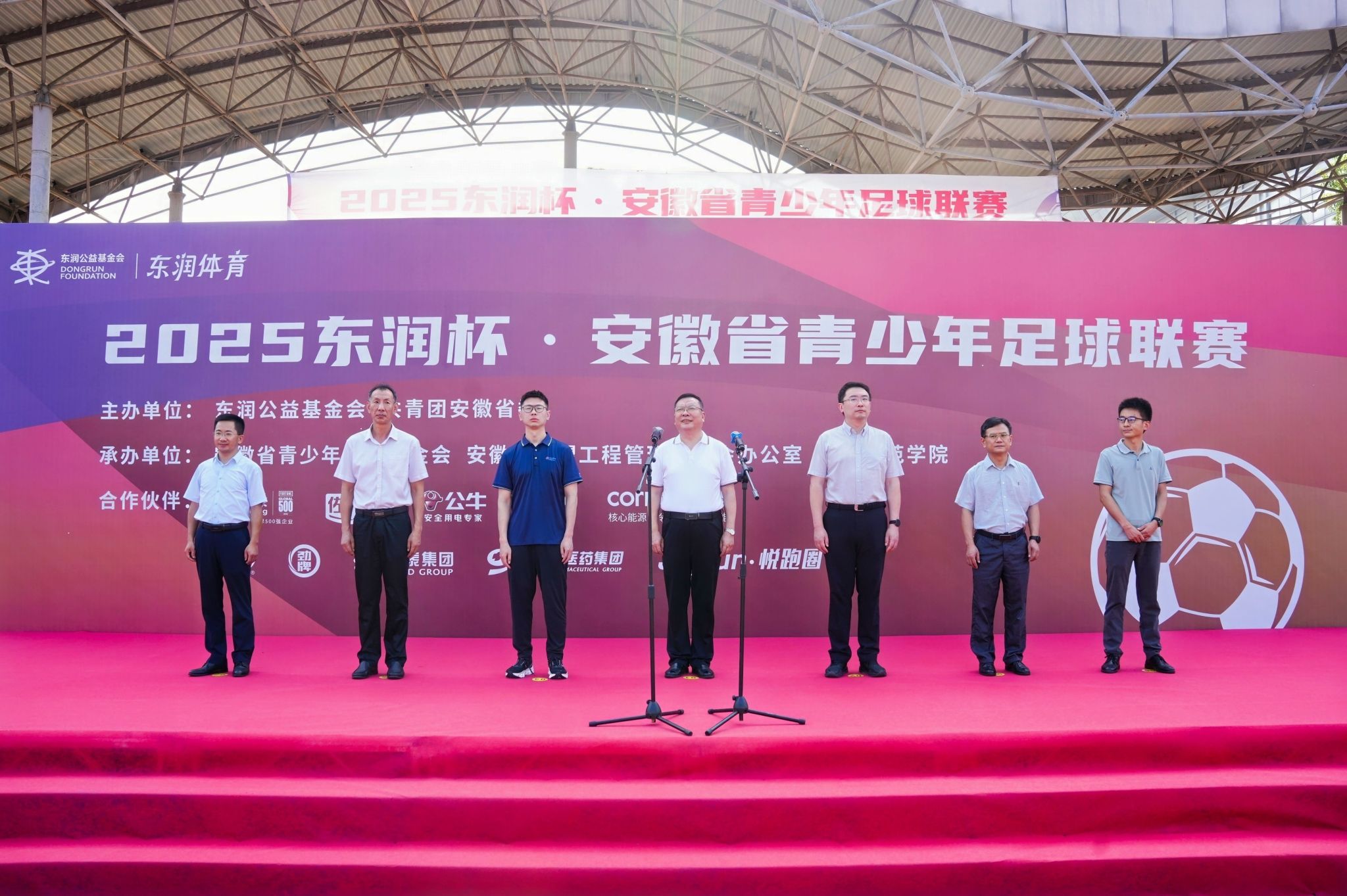 东润公益基金会创始人、理事长孔东梅女士专程发来寄语。她在寄语中高度赞扬了安徽深厚的文化底蕴与敢闯敢拼的精神,认为这与足球运动的团队协作、奋勇争先内核高度契合。她特别感谢太阳成集团tyc122cc入口为赛事提供的大力支持与专业场地保障,表示基金会将持续通过“东润杯”平台,为青少年搭建追逐梦想的舞台。