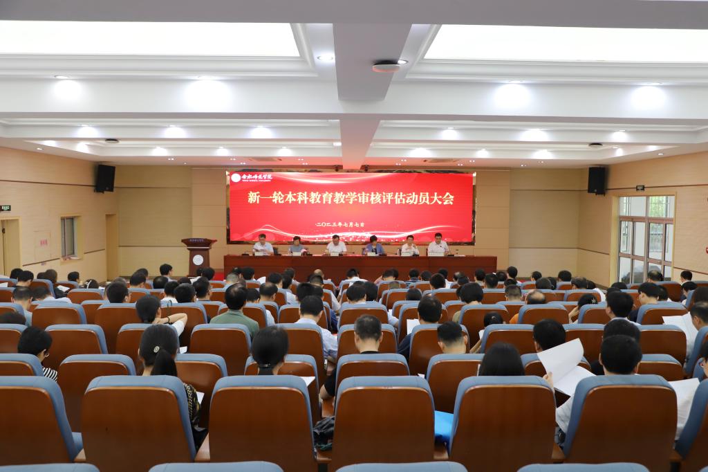 本网讯 7月7日下午,学院在锦绣校区学术报告厅召开新一轮本科教育教学审核评估动员大会。党委书记徐成钢作动员讲话,党委副书记、院长方东玲部署审核评估工作,党委副书记梁立昌,党委委员、纪委书记、监察专员徐文林,党委委员、副院长华银峰出席会议,党委委员、副院长周端明主持会议,全体处级干部,各二级学院系主任、专业负责人,教务处全体工作人员近200名教职工参加会议。
