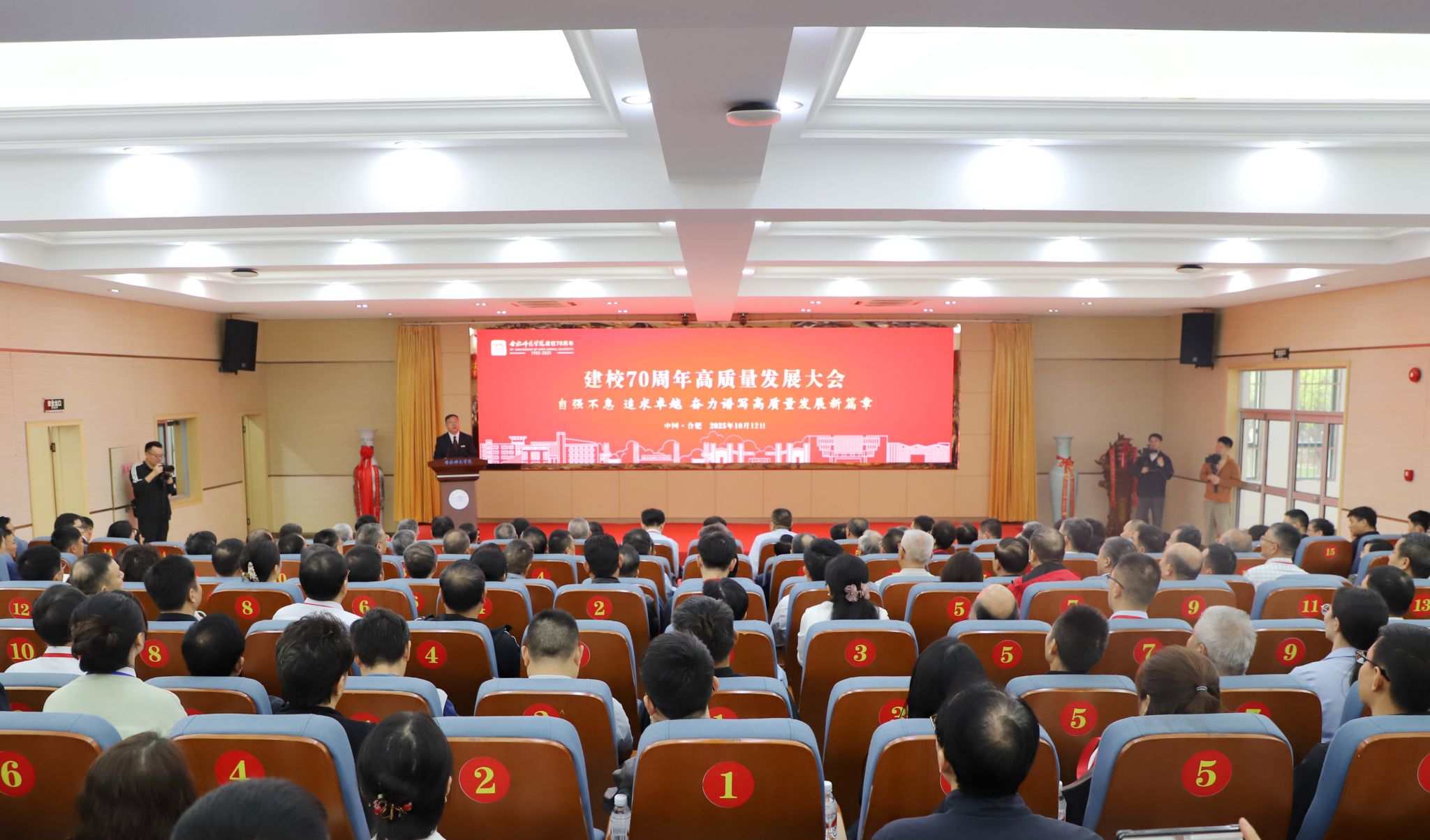 院党委副书记、院长方东玲作学校发展报告,系统回顾了学校70年跌宕起伏的办学历程。她指出,学院坚持党建引领,办学方向在时代征程中始终坚定,以高质量党建推动高质量发展;坚持立足师范传统,教师教育底色在砥砺奋进中愈加鲜明,构建“六位一体”职前职后贯通的教师教育体系;坚持适应社会需求,应用转型在追求卓越中持续深化,优化学科专业布局,加强校企合作,为地方产业转型发展注入新动能;坚持立德树人,人才培养质量在实践积淀中不断夯实,为区域经济社会发展提供了有力支撑。面向未来,学院将紧紧围绕“更名大学”目标,重点实施党的建设、立德树人、内涵提升、综合改革“四大工程”,持续激发全校师生锐意进取、奋发有为,奋力开创应用特色高水平大学建设新局面。