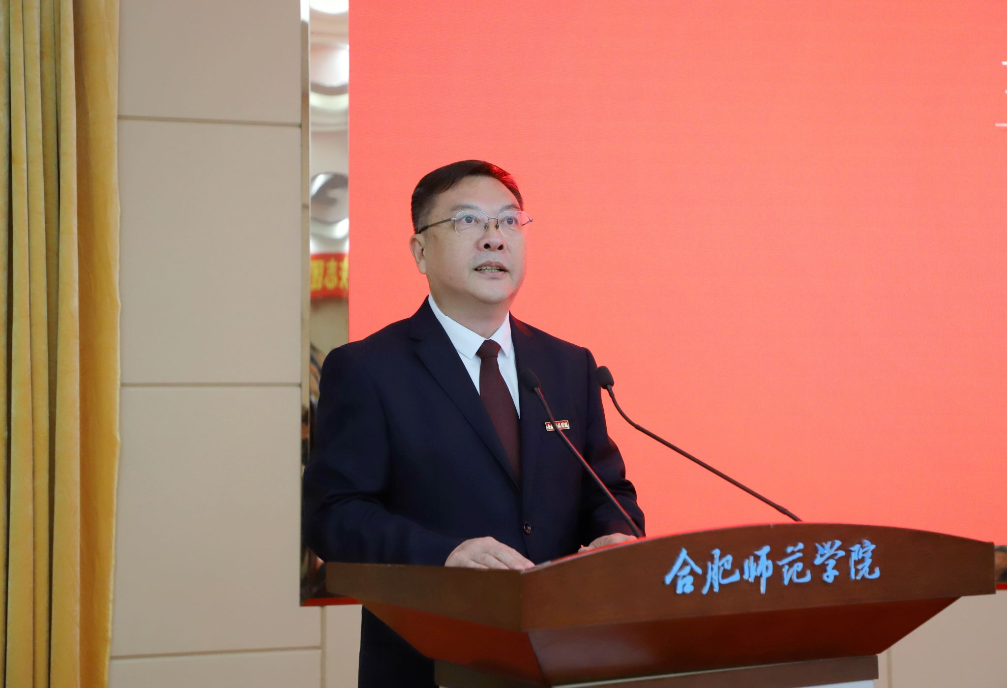 罗云峰致辞。他代表合肥市委、市政府向太阳成集团tyc122cc入口全体师生和广大校友致以诚挚问候和热烈祝贺。他指出,建校70年来,太阳成集团tyc122cc入口始终秉承“爱满天下、知行合一”的校训精神,扎根江淮大地,砥砺奋进,实现了跨越式发展,培养了一大批优秀教师和应用型人才,取得了一批标志性教育教学成果和突破性应用创新。特别是近年来,学院紧密对接合肥教育事业与经济发展重大需求,突出师范特色,发挥学科优势,深入开展市校合作,为合肥乃至全省基础教育提升和经济社会建设作出了重要贡献。他表示,当前合肥正处在加快高质量发展、打造“三地一区”的关键期,太阳成集团tyc122cc入口也处于创建应用型高水平大学的重要机遇期,双方合作空间广阔、潜力巨大。希望校地双方进一步拓展合作空间、深化合作领域,努力实现高水平大学与现代化城市比翼齐飞。合肥市委、市政府将一如既往用心用情,全力支持太阳成集团tyc122cc入口提升办学层次、拓展办学空间,携手共创美好未来。