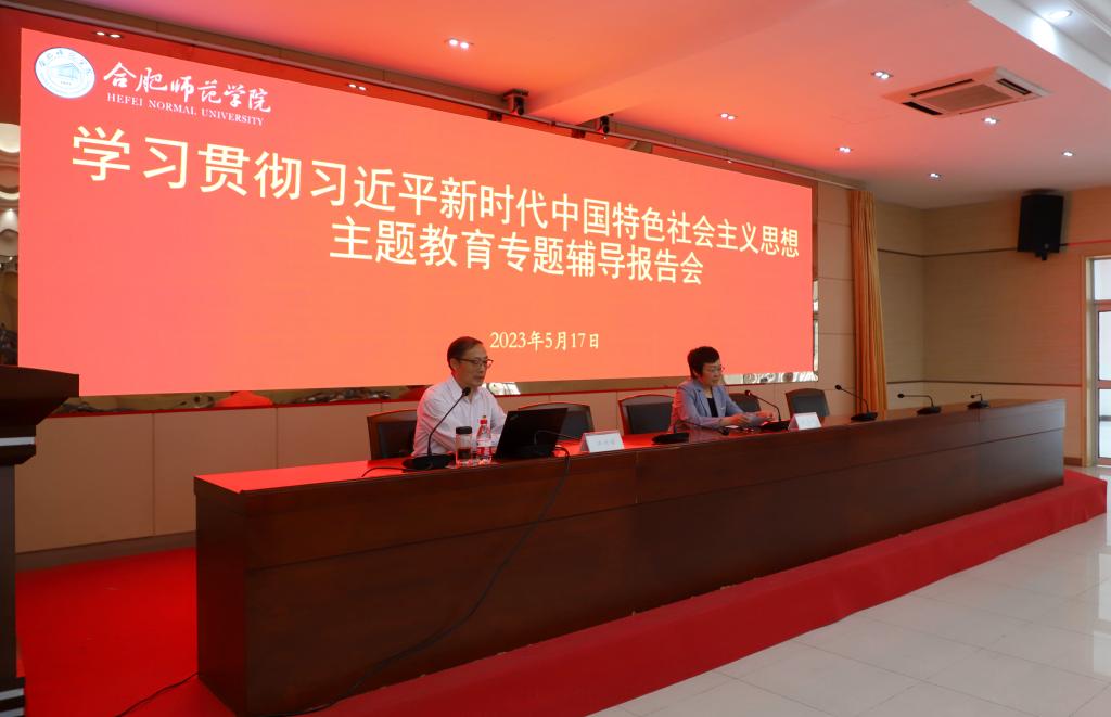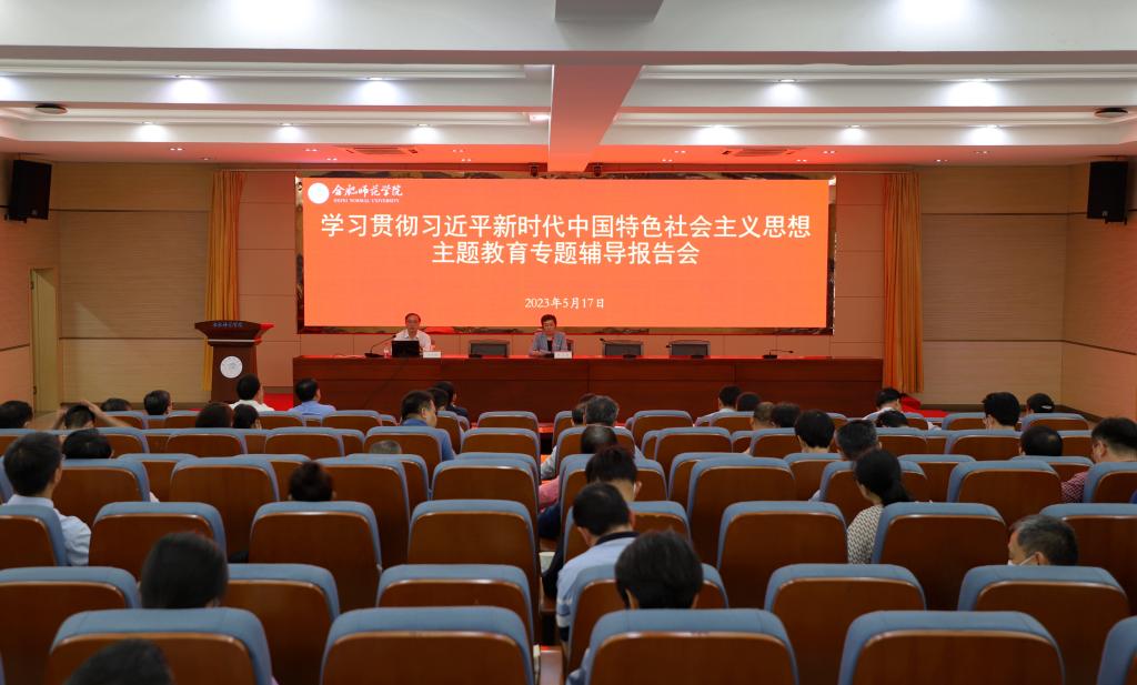 本网讯 5月17日下午,学院党委学习贯彻习近平新时代中国特色社会主义思想主题教育读书班专家辅导报告会在锦绣校区学术报告厅举行。省委党校(安徽行政学院)马克思主义学院院长、教授、博士生导师汪兴福作辅导报告。党委副书记梁立昌主持报告会。党委委员、纪委书记、监察专员徐文林,党委委员、组织部部长赵帮恚,党委委员、宣传部部长、统战部部长常树宝出席,全体处以上干部、全体辅导员参加会议。