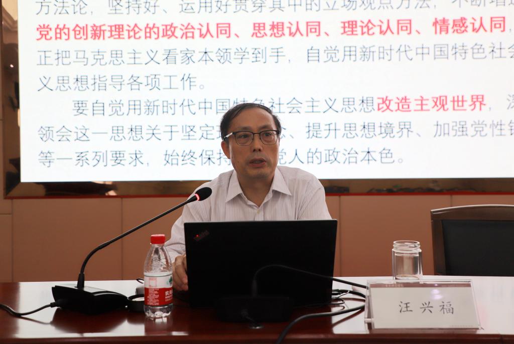 汪兴福以《学习贯彻习近平新时代中国特色社会主义思想》为题,系统阐释了习近平新时代中国特色社会主义思想生成条件、理论体系和重大意义,梳理了习近平新时代中国特色社会主义思想丰富发展的过程,鲜明展示了习近平新时代中国特色社会主义思想守正创新的理论品质,充分彰显了习近平新时代中国特色社会主义思想的核心要义。